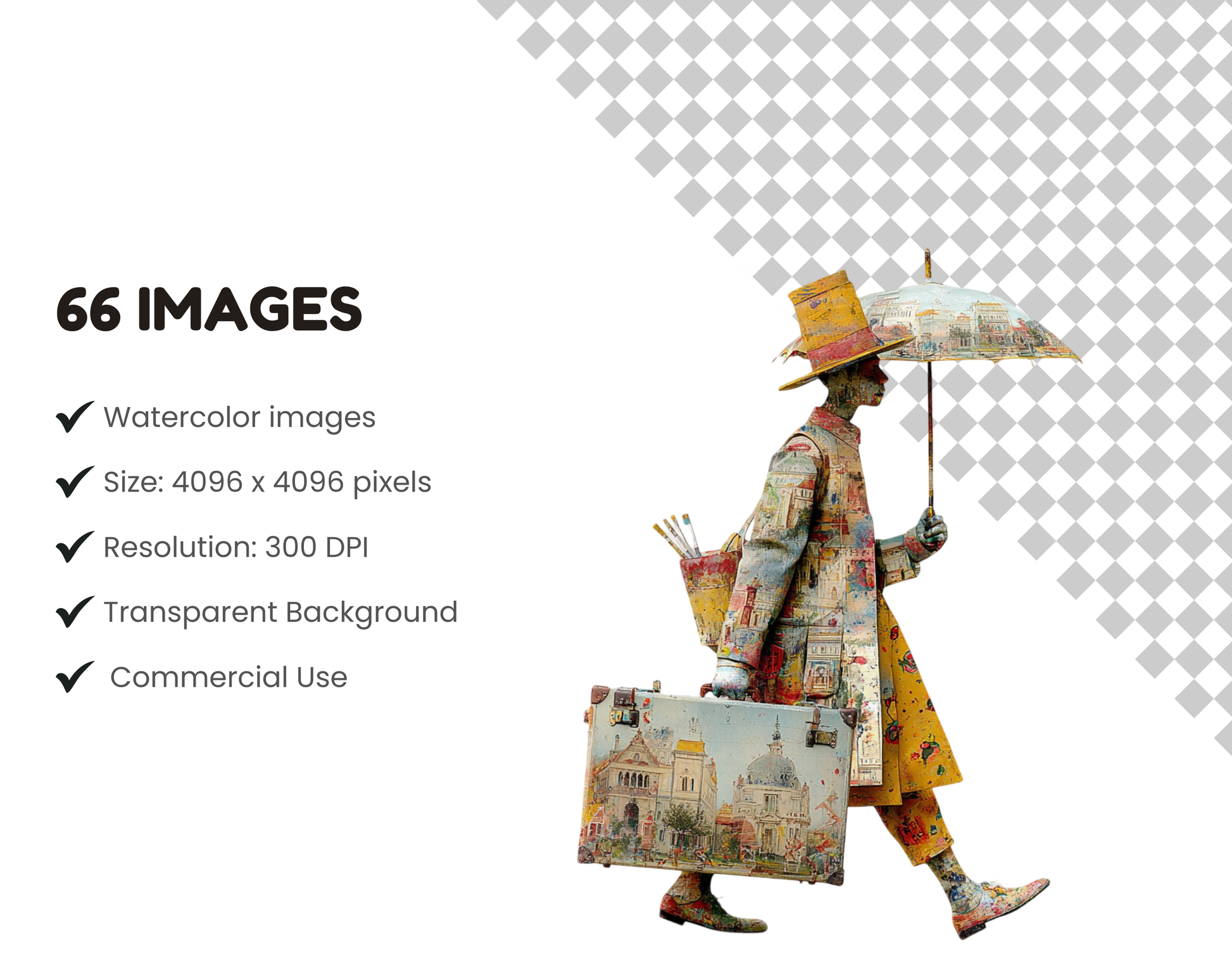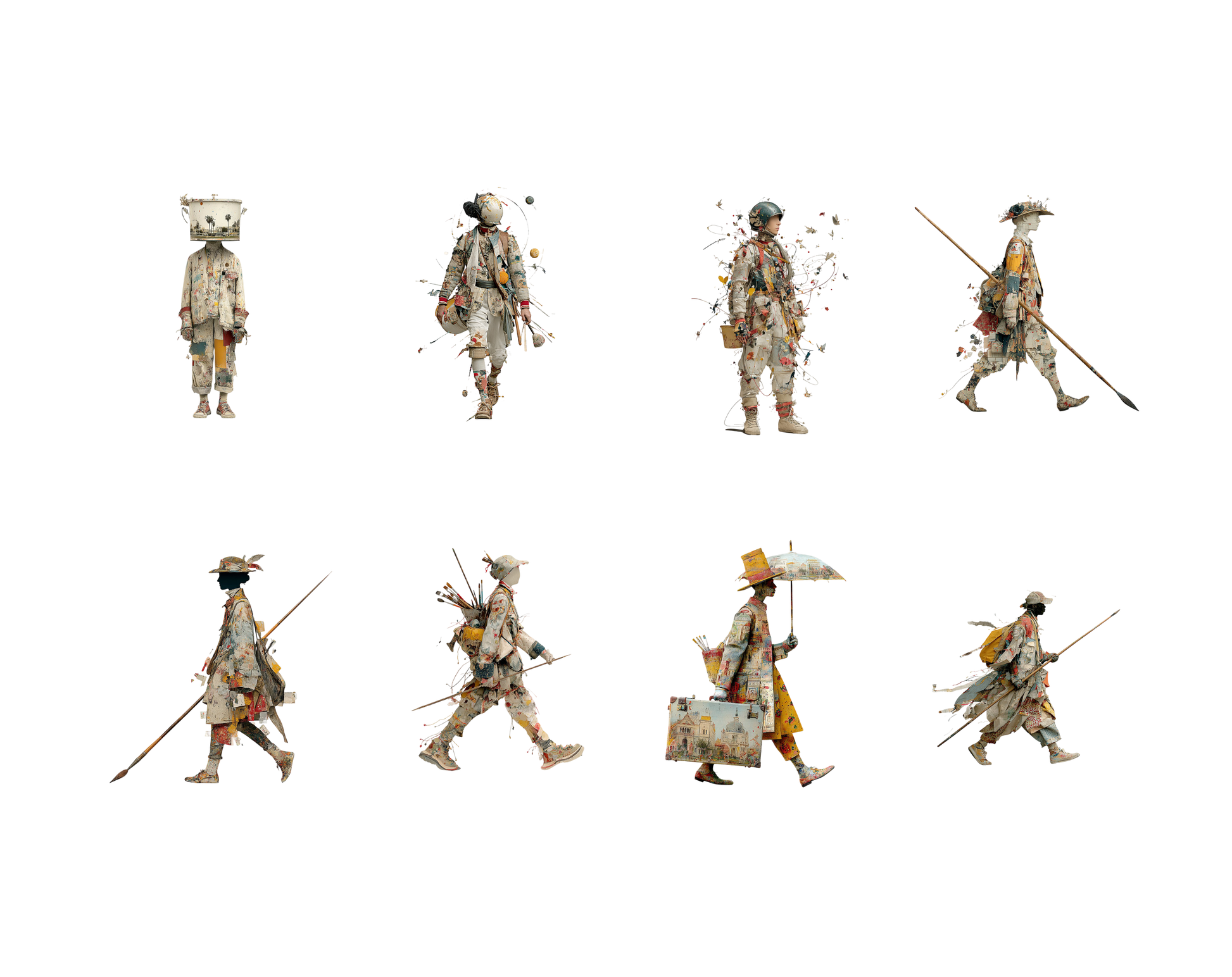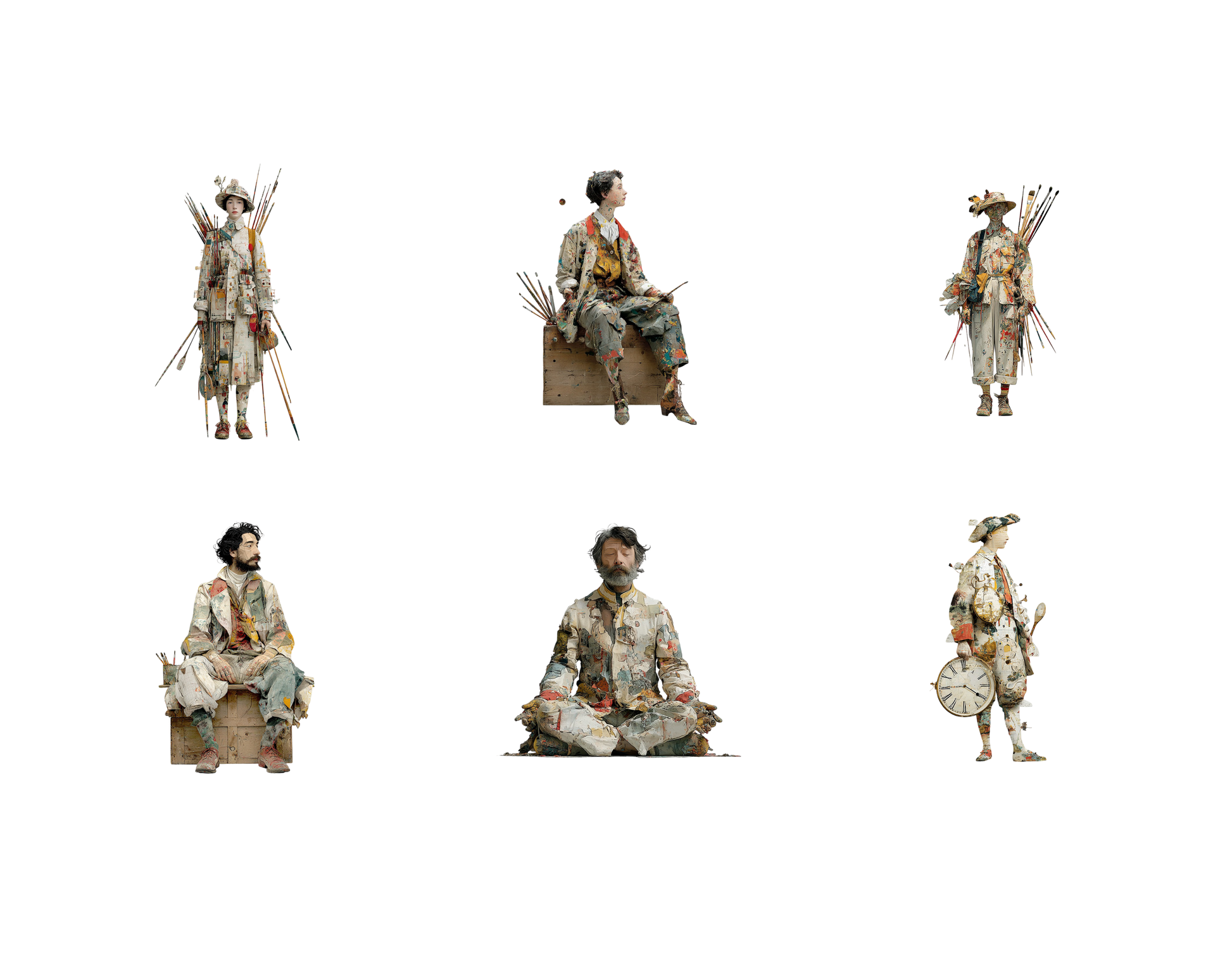 1) 66 hochwertige Clipart-Bilddateien mit Künstlercharakteren und transparentem Hintergrund
