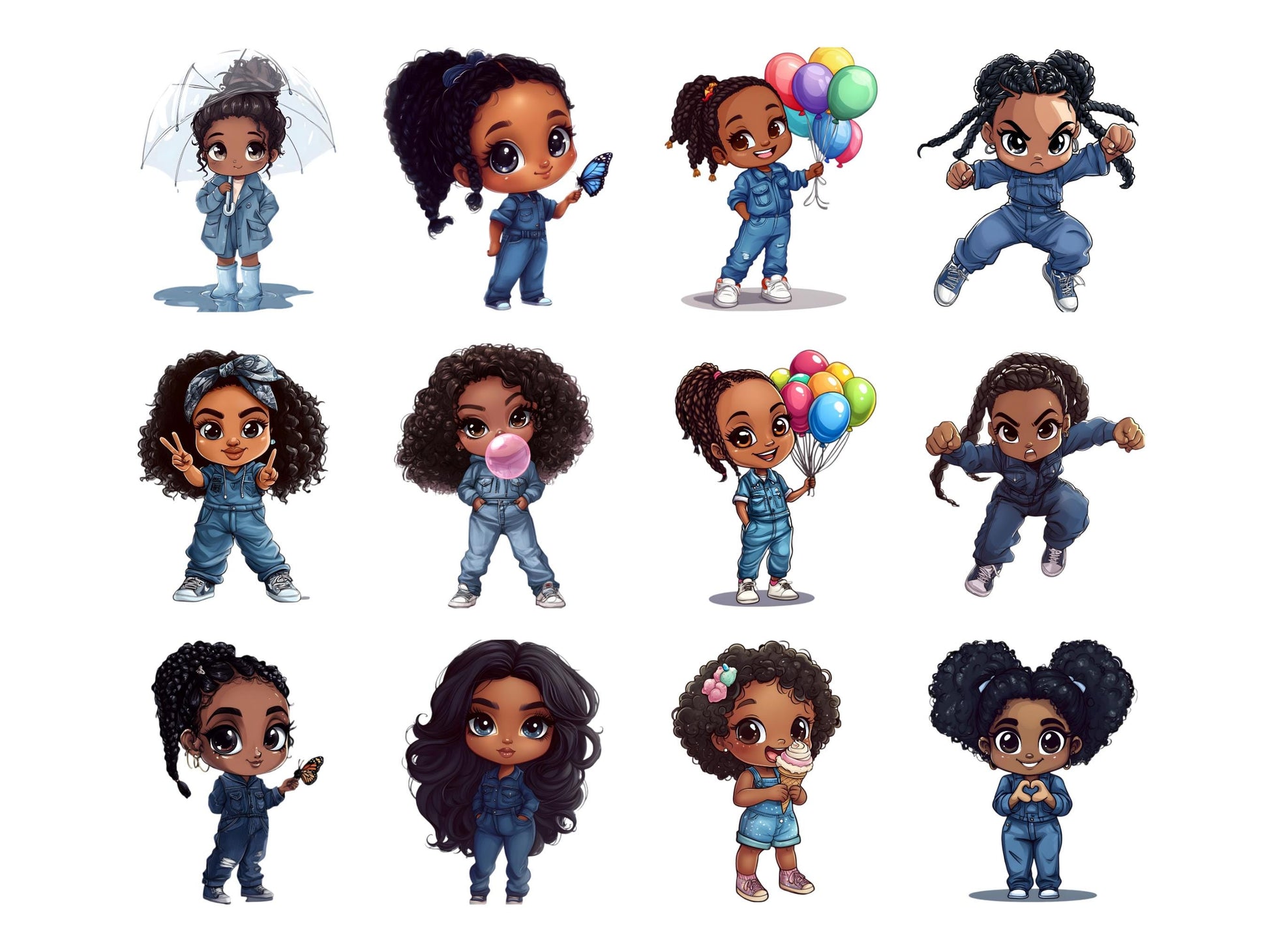 - 45 hochwertige Clipart-Bilddateien von schwarzen Mädchen mit transparentem Hintergrund