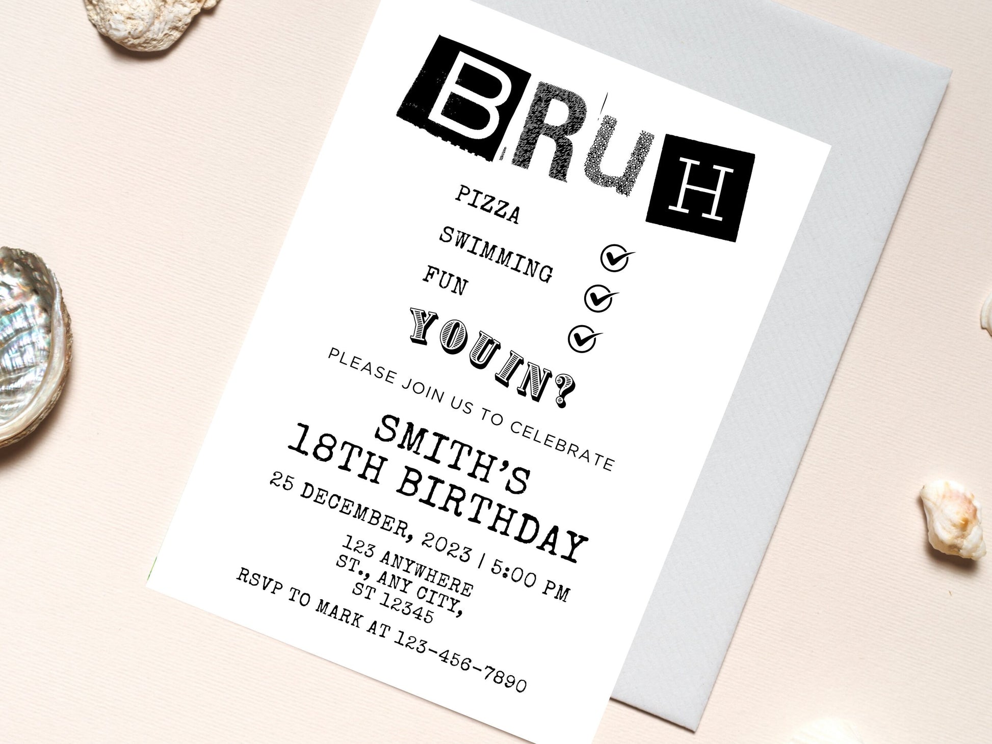 Vorlage für eine Geburtstagseinladung für Brüder, Schwarz-Weiß-Party (Digitaler Download)