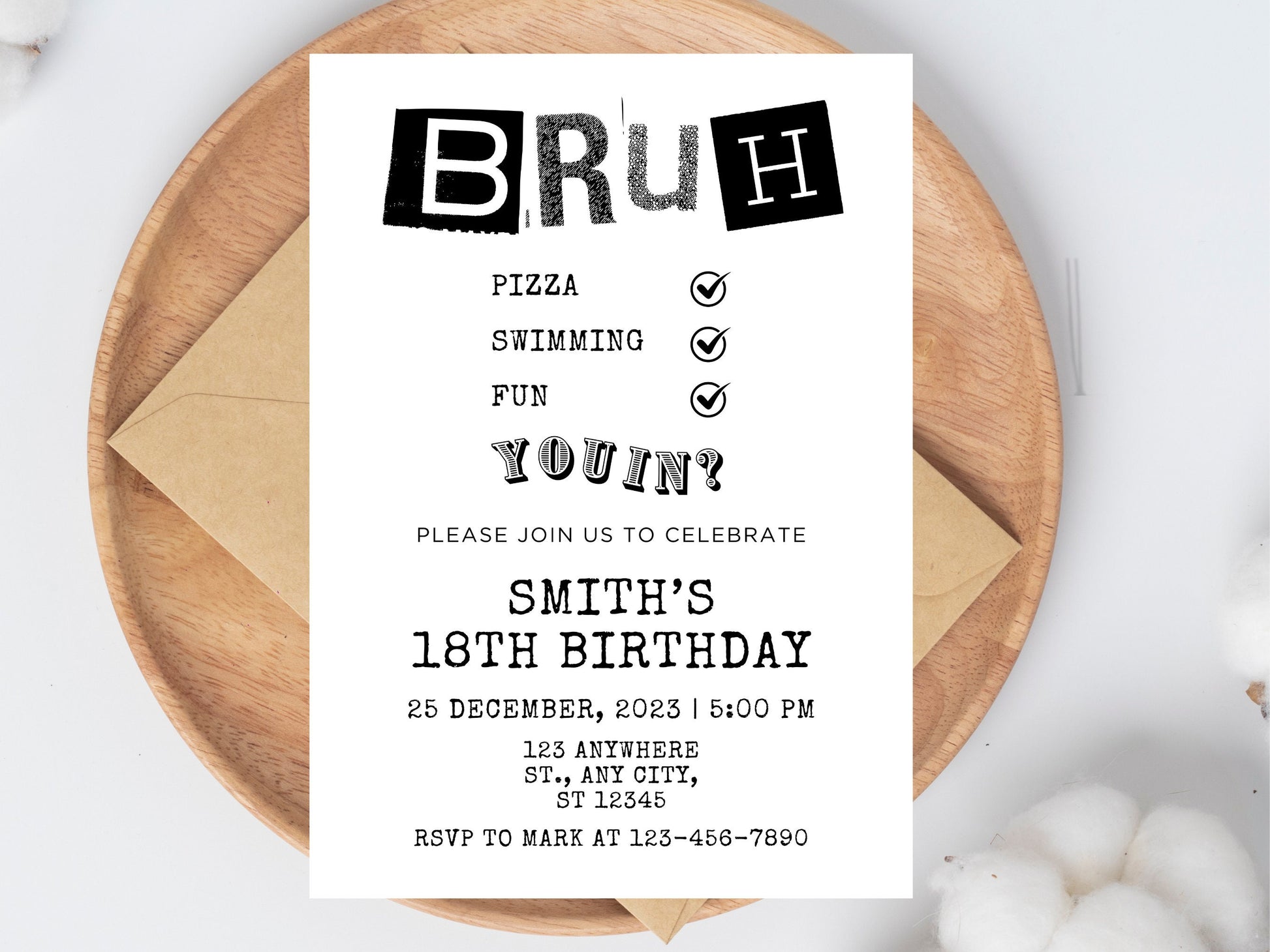 Wir präsentieren unsere individuell anpassbare Geburtstagseinladungsvorlage „Bruder, du bist eingeladen!“. Diese vielseitige Vorlage lässt sich ganz einfach an Ihre Wünsche anpassen. Ändern Sie den Text, die Schriftgröße und die Schriftart und bearbeiten oder entfernen Sie Bilder nach Belieben.