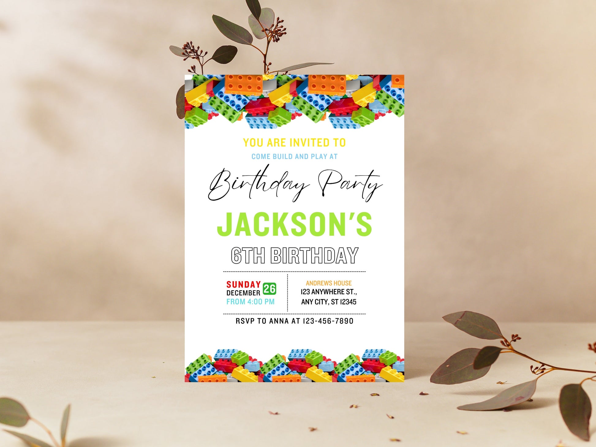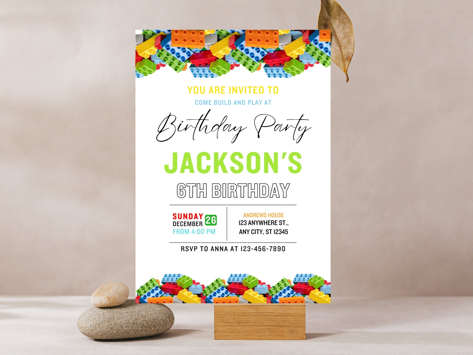 Geburtstagseinladung mit Bausteinen, bearbeitbare Einladung zur Kinderparty (digitaler Download)