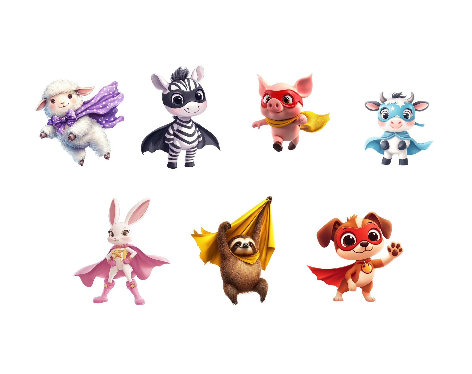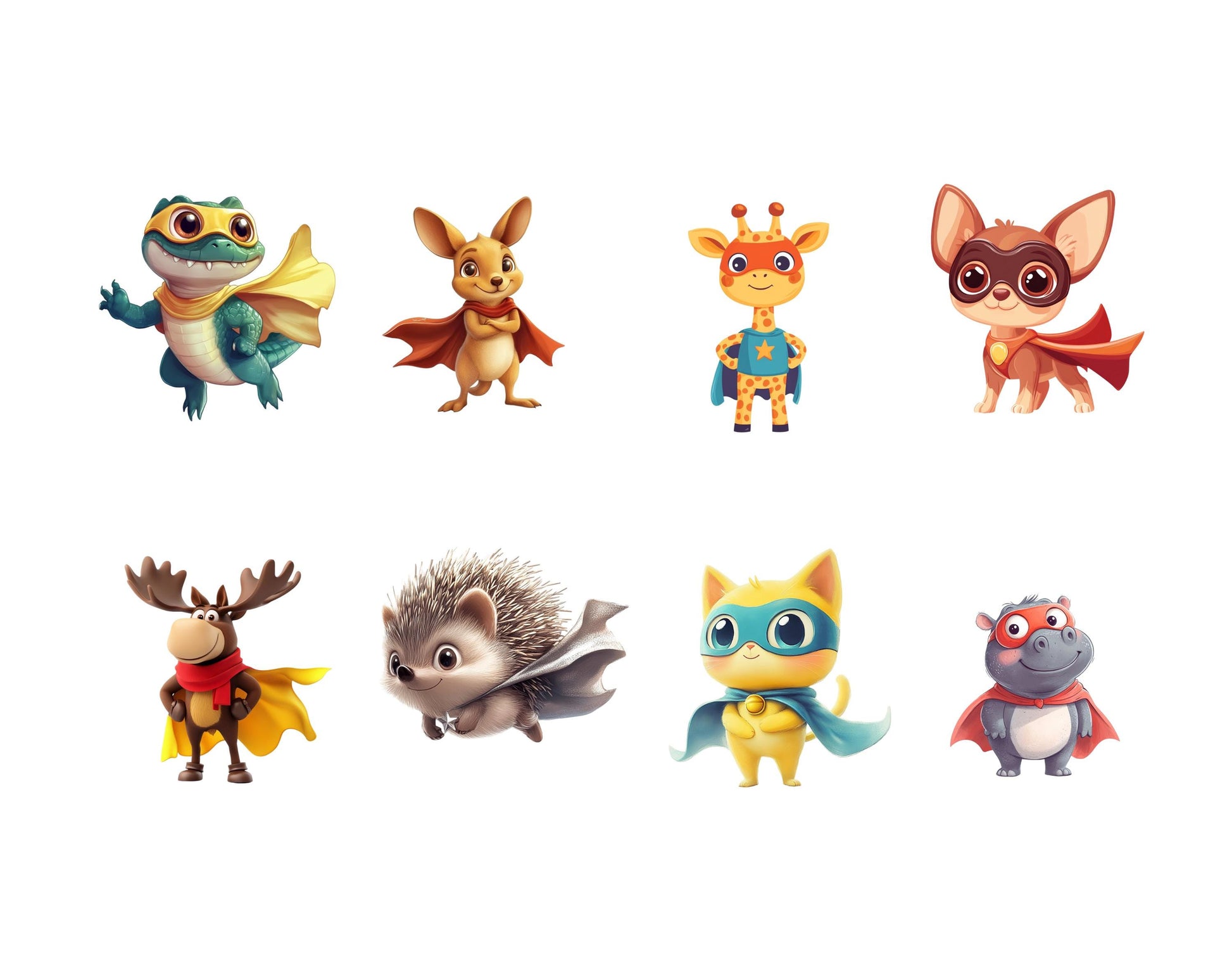 Niedliches Tier-Superhelden-Clipart-Bundle, Tier-Superhelden-Clipart (PNG), Niedliche Tier-Clipart, Niedliche Baby-Tier-Superhelden-Clipart (PNG)