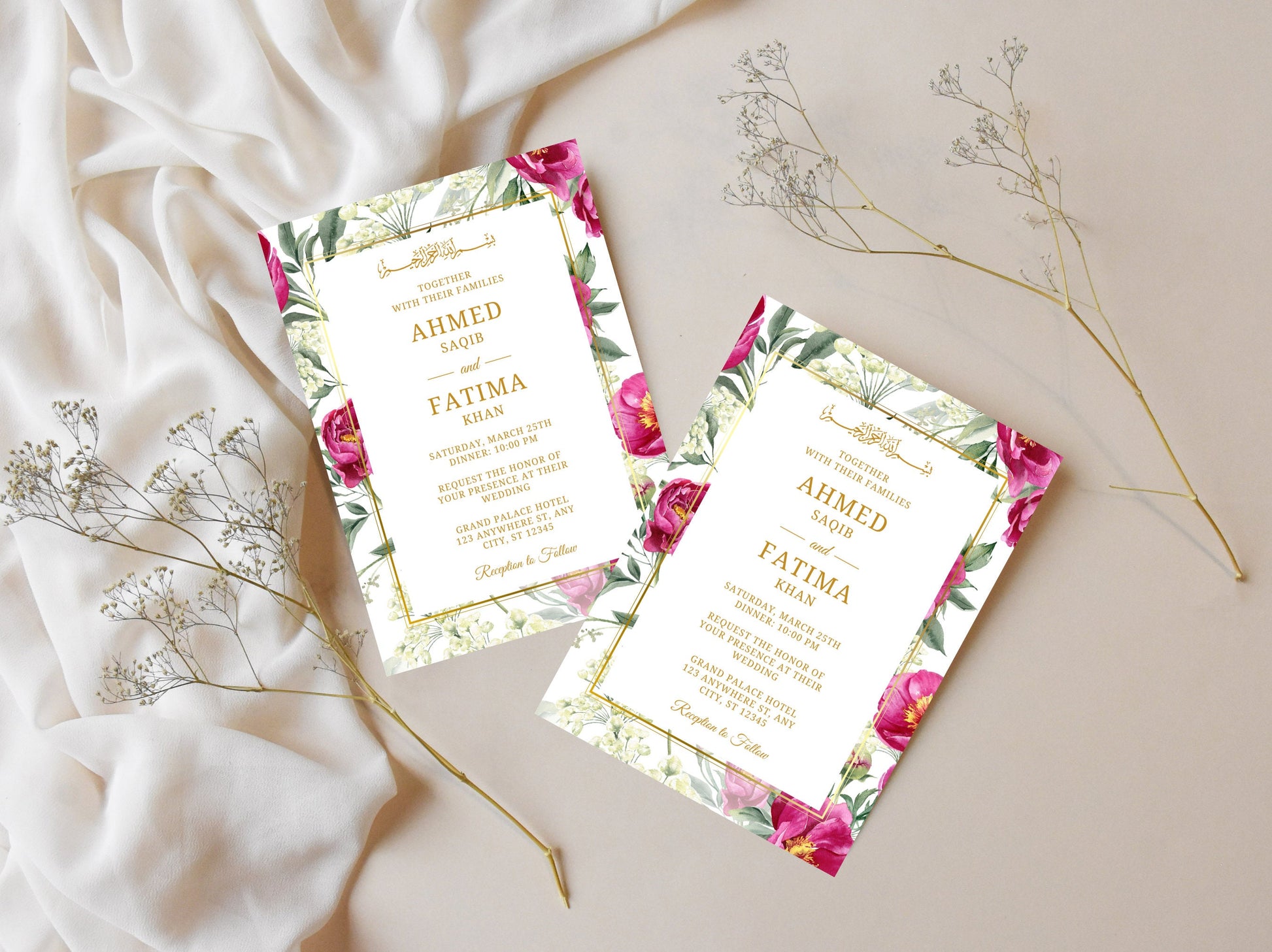 Bearbeitbare muslimische Hochzeitseinladung, islamische Nikah-Einladungsvorlage, rosa florale muslimische Hochzeitseinladung, digitale muslimische Hochzeitseinladung
