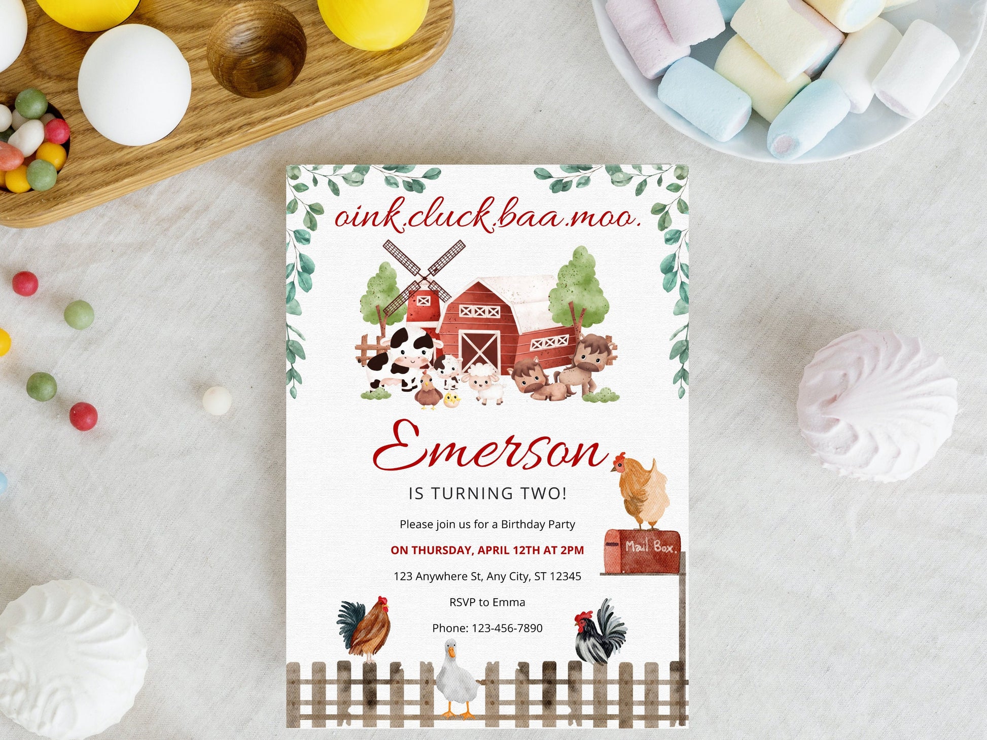 Einladungsvorlage für eine Bauernhof-Geburtstagsparty (Digitaler Download)