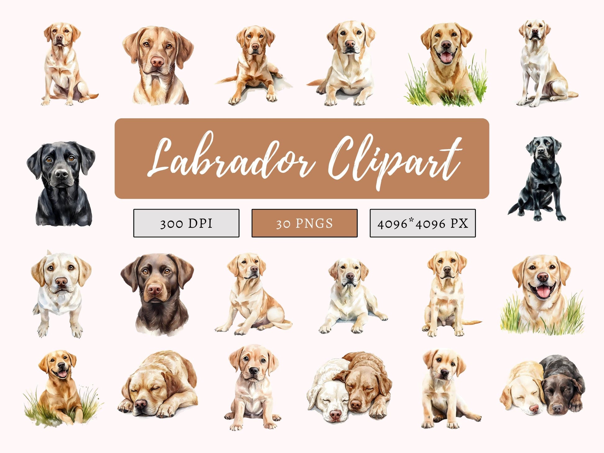 - 30 hochwertige Labrador-Clipart-Bilddateien mit transparentem Hintergrund