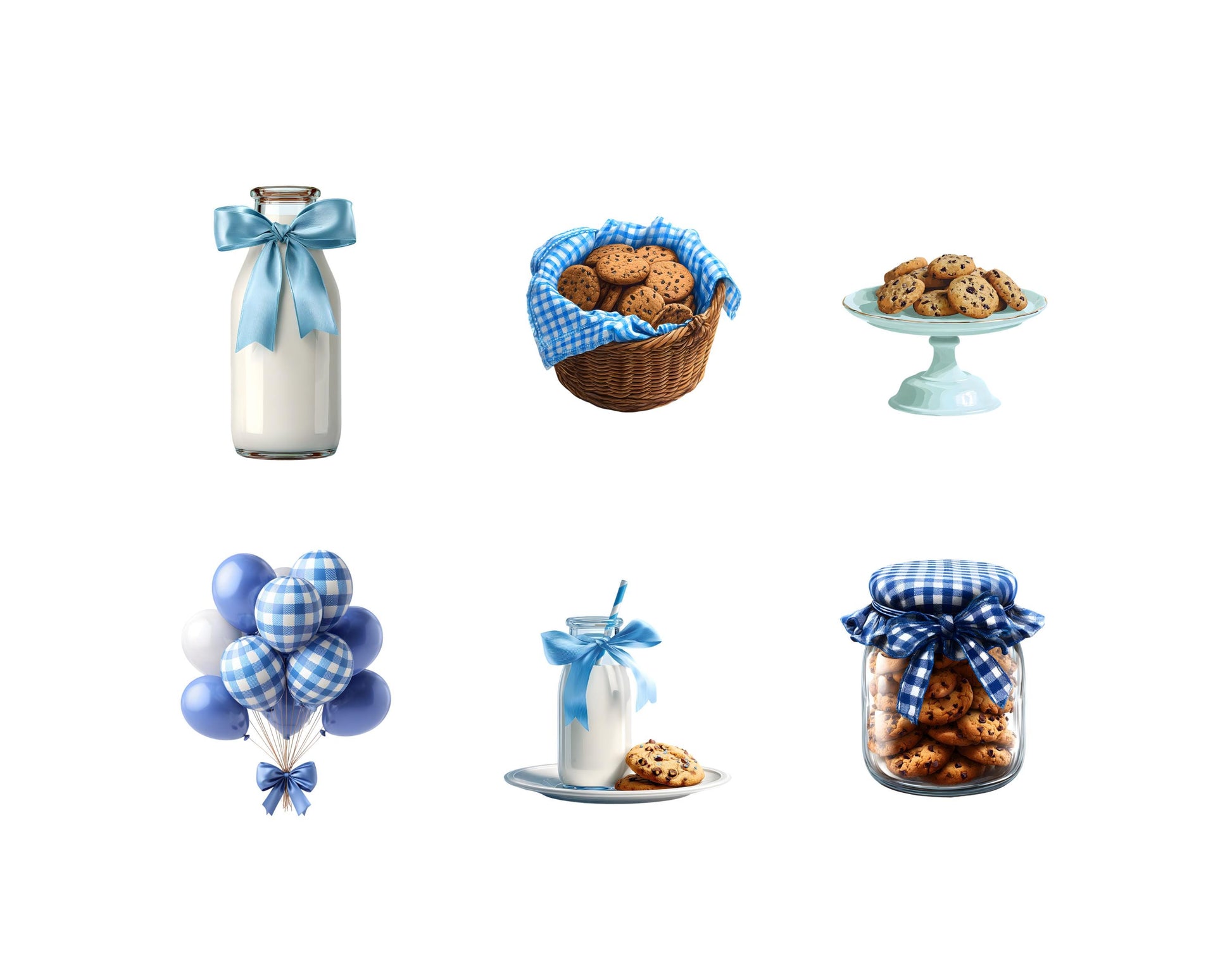 Cliparts „Milch und Kekse“, Kekse-Clipart-Bundle, Geburtstags-Cliparts, Schokoladenkekse-Cliparts, blau-weiß karierte Cliparts, digitaler Download