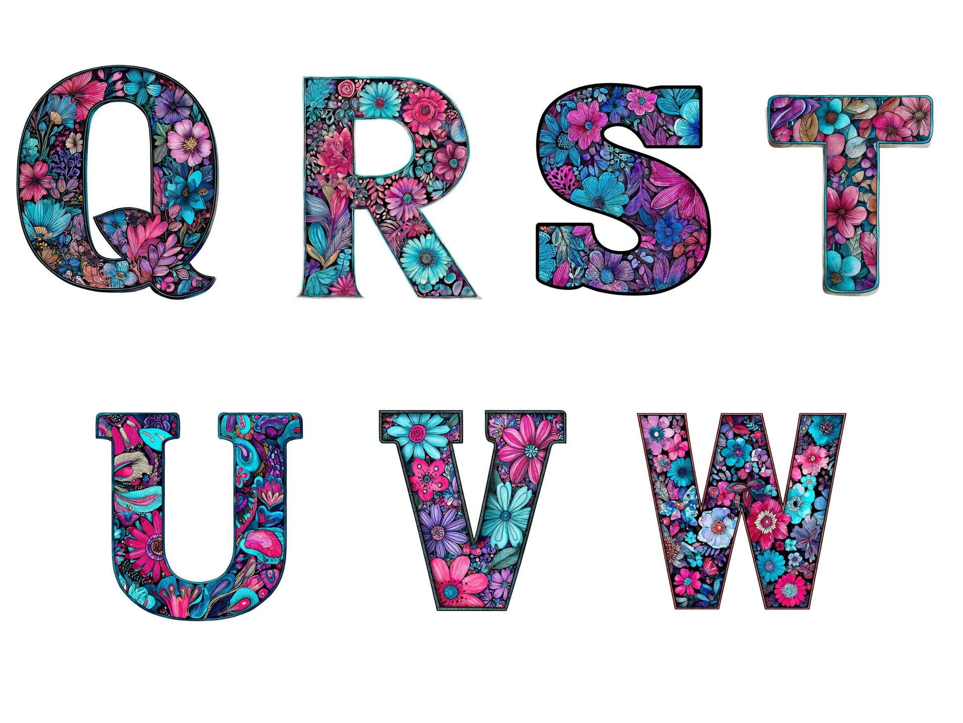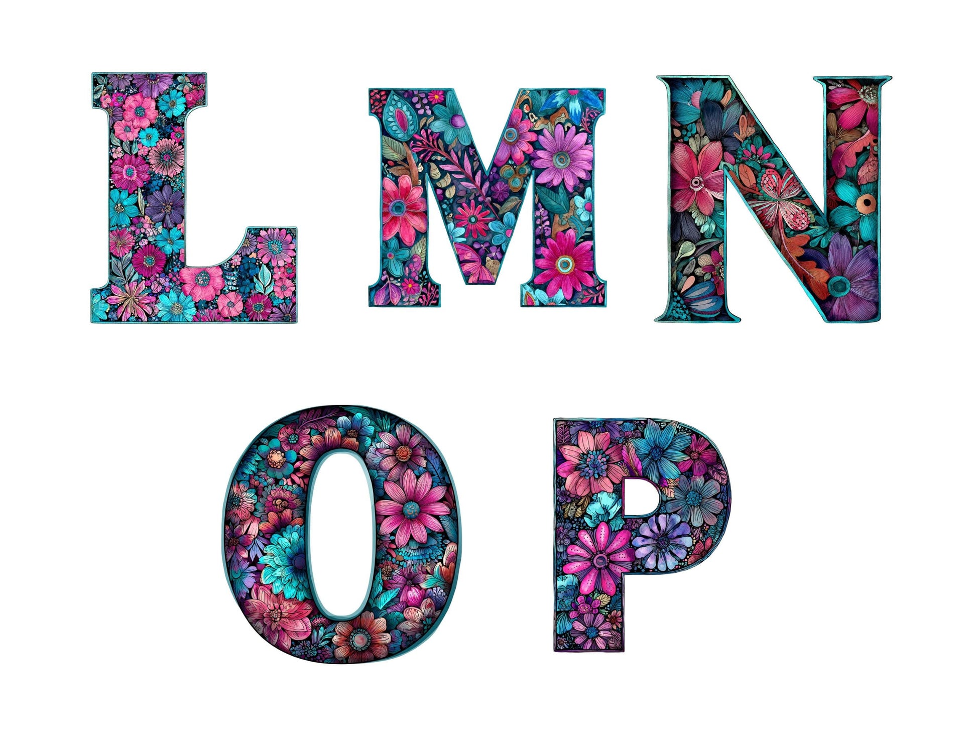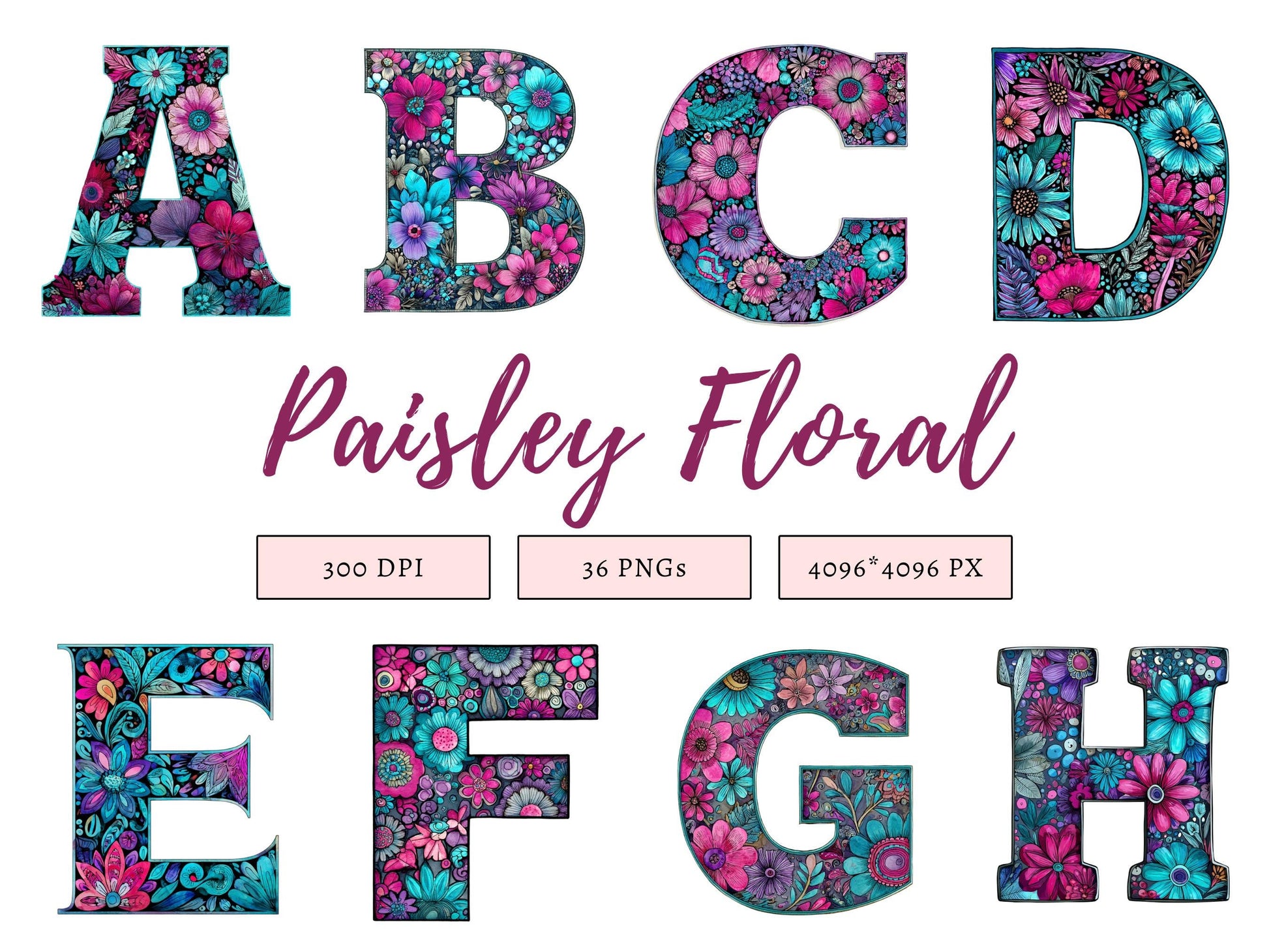 - 36 hochwertige Paisley-Blumenalphabet-Clipart-Bilddateien mit transparentem Hintergrund