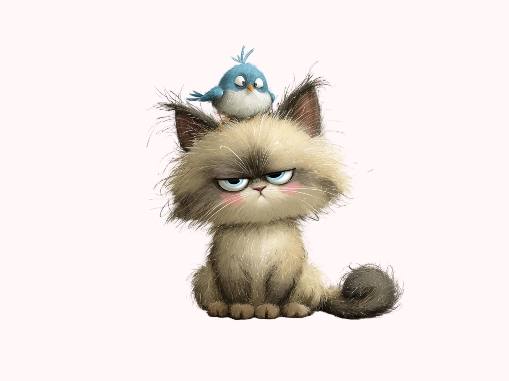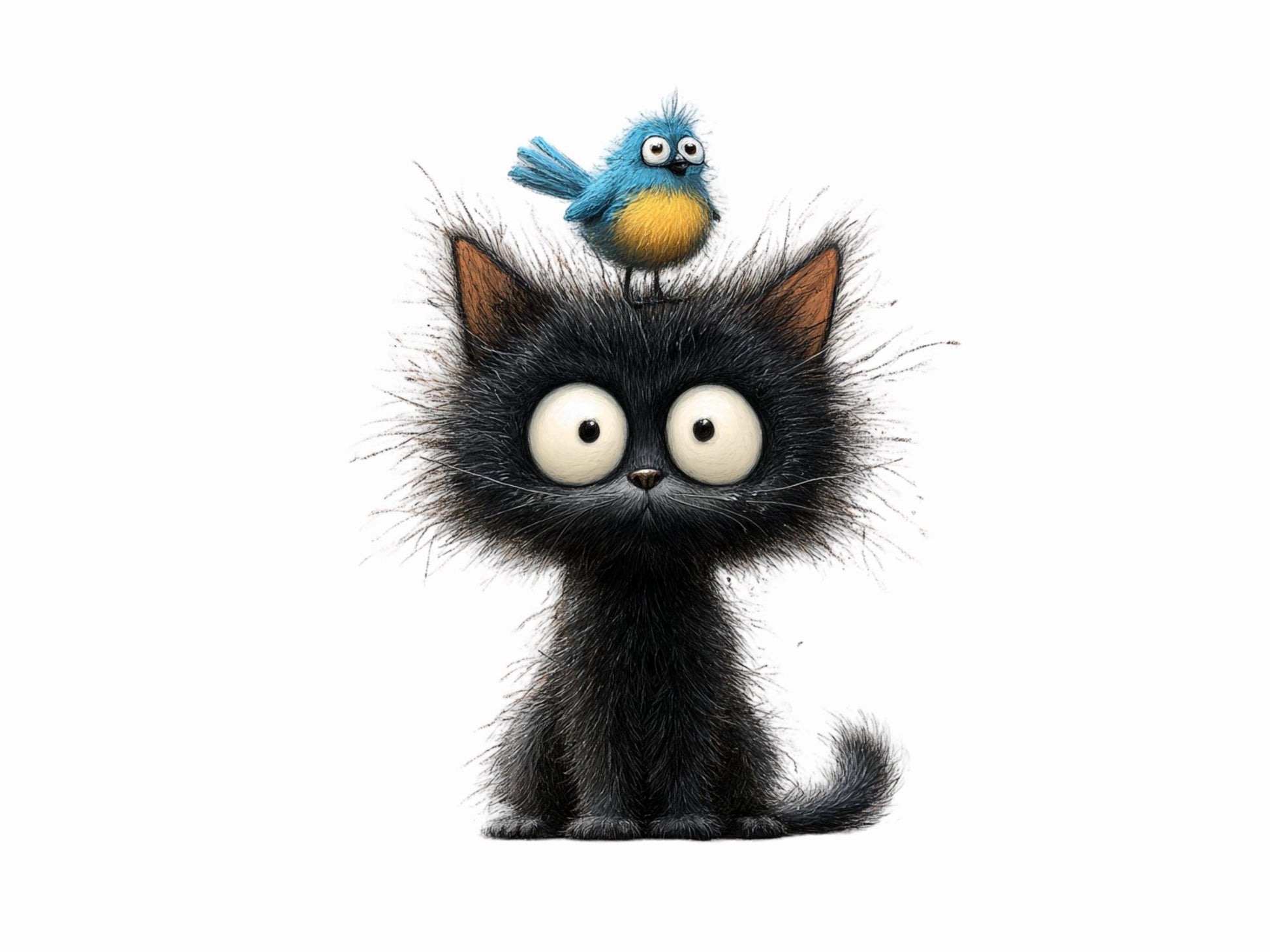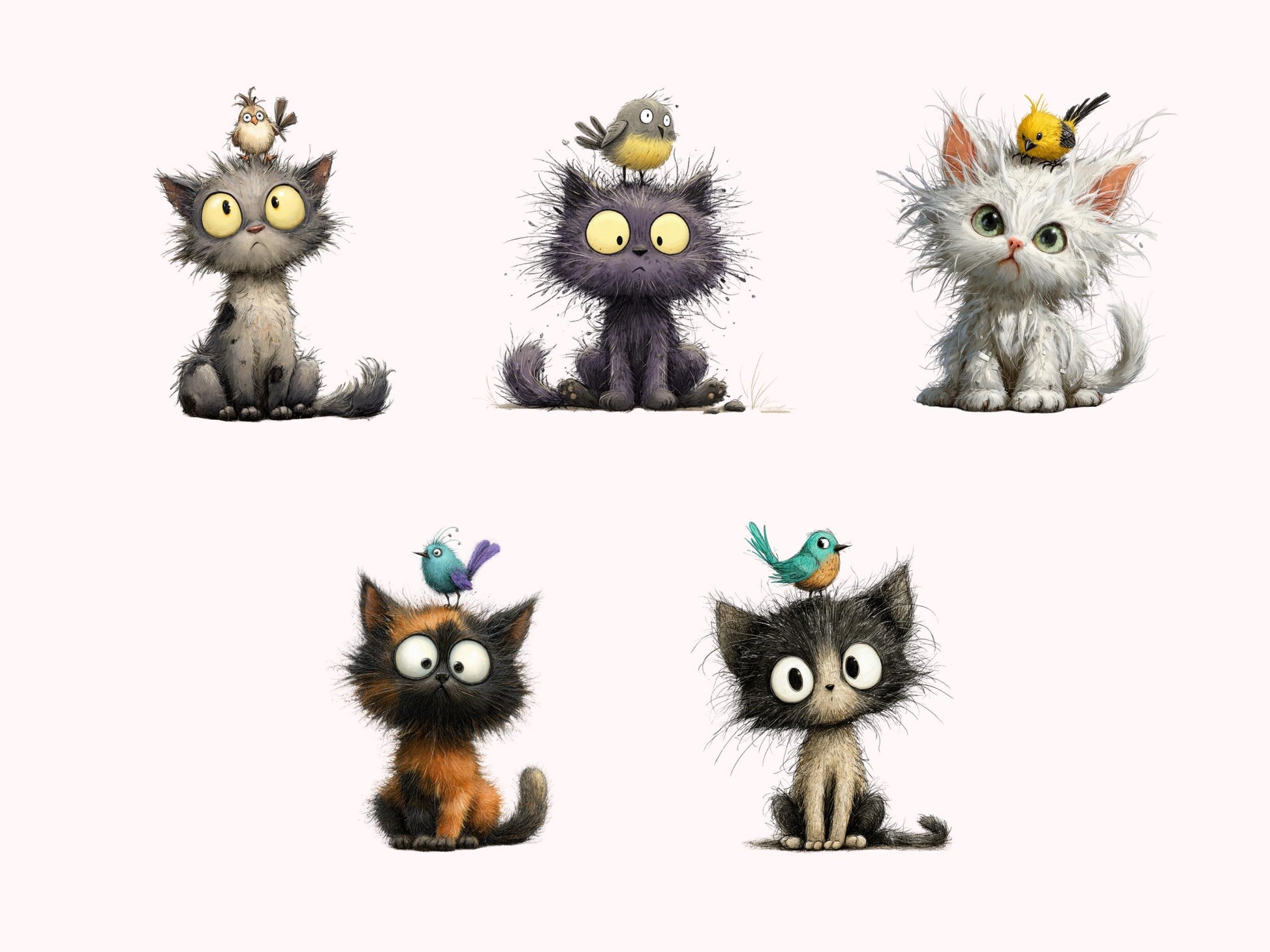 - 20 hochwertige Clipart-Bilddateien mit skurrilen Katzenmotiven und transparentem Hintergrund