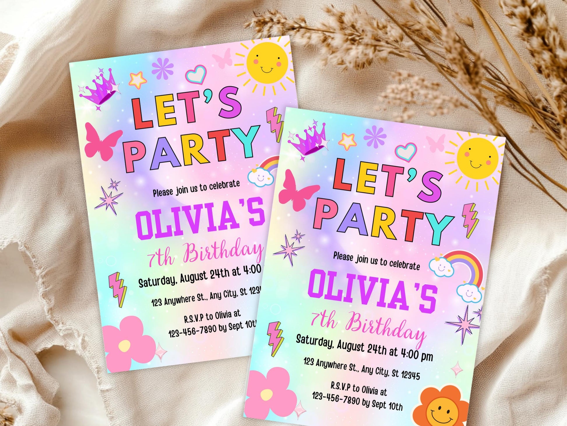 Einladungsvorlage für eine Party zum 7. Geburtstag (für jedes Alter) – Druckbare und bearbeitbare Einladung zum 7. Geburtstag