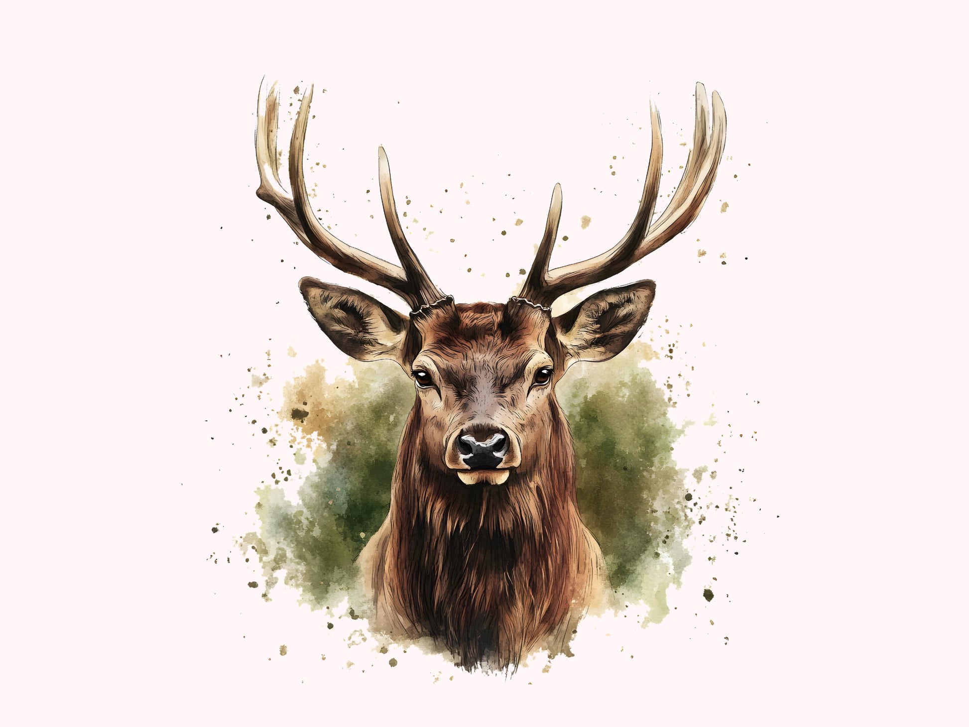 Rothirsch-Clipart-Set, Rothirsch-Clipart-Bundle (PNG), Rothirsch-Aquarell-Clipart, Schilfhirsch-Wald-Clipart, Sofort-Download