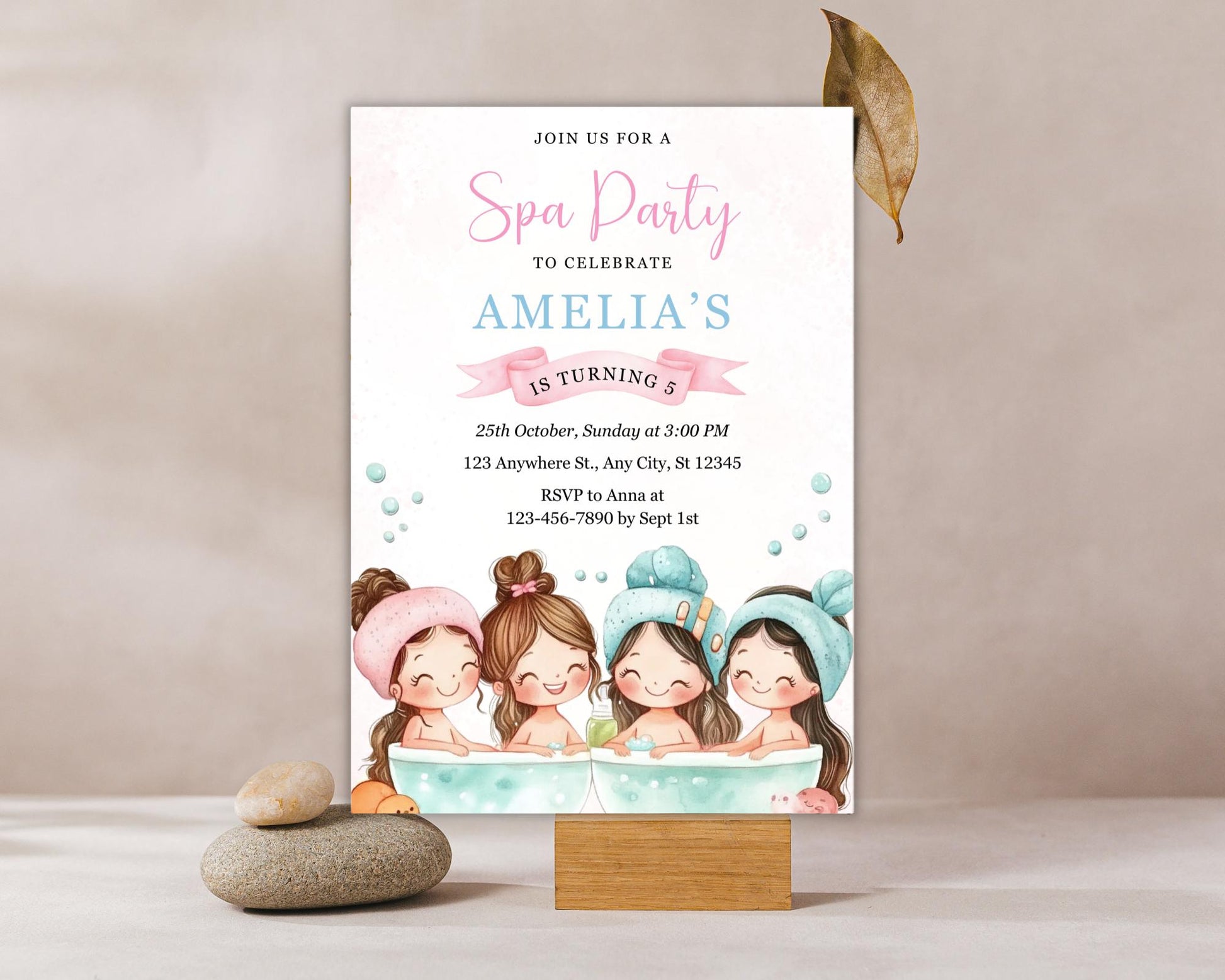 Vorlage für eine Einladung zur Spa-Party: Individuell gestaltbare Geburtstagseinladung (Digitaler Download, 5x7-Zoll-PDF-Datei)