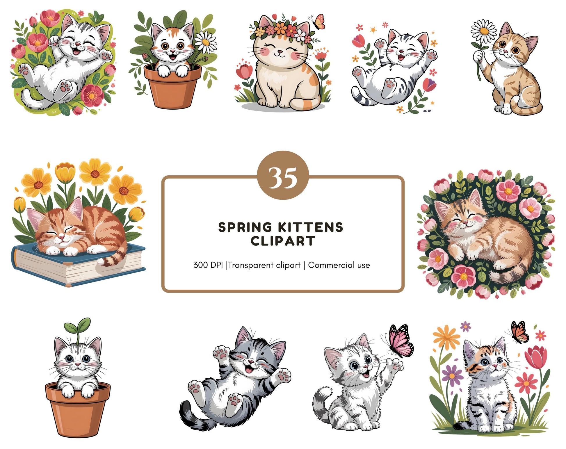 1) 35 hochwertige Clipart-Bilddateien mit Frühlingskätzchen und transparentem Hintergrund