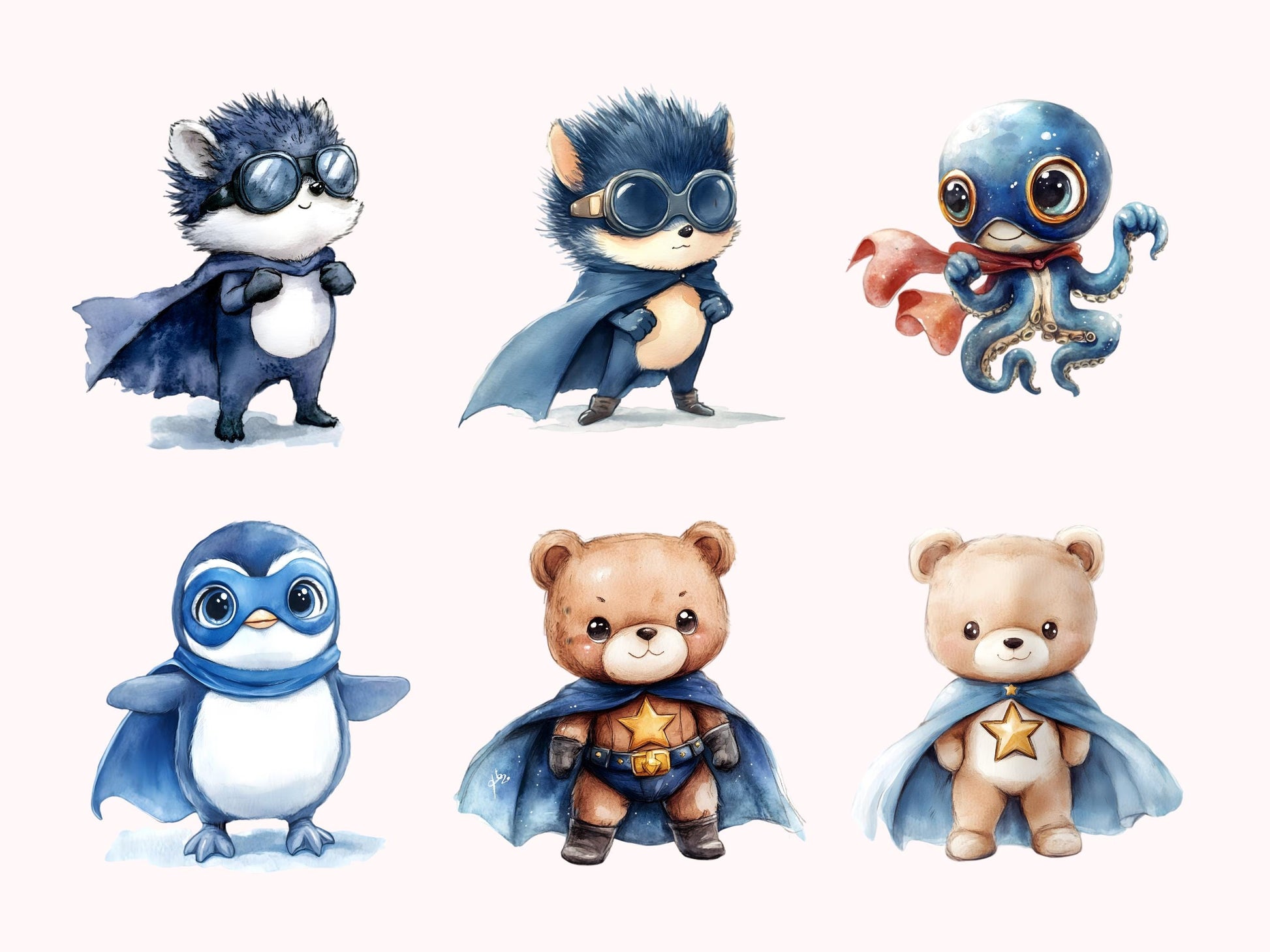 Aquarell-Tier-Superhelden-Clipart-Bundle, Tier-Superhelden-PNG, Superhelden-Clipart, Niedliche Tier-Superhelden-PNG, Niedliche Baby-Tier-PNG