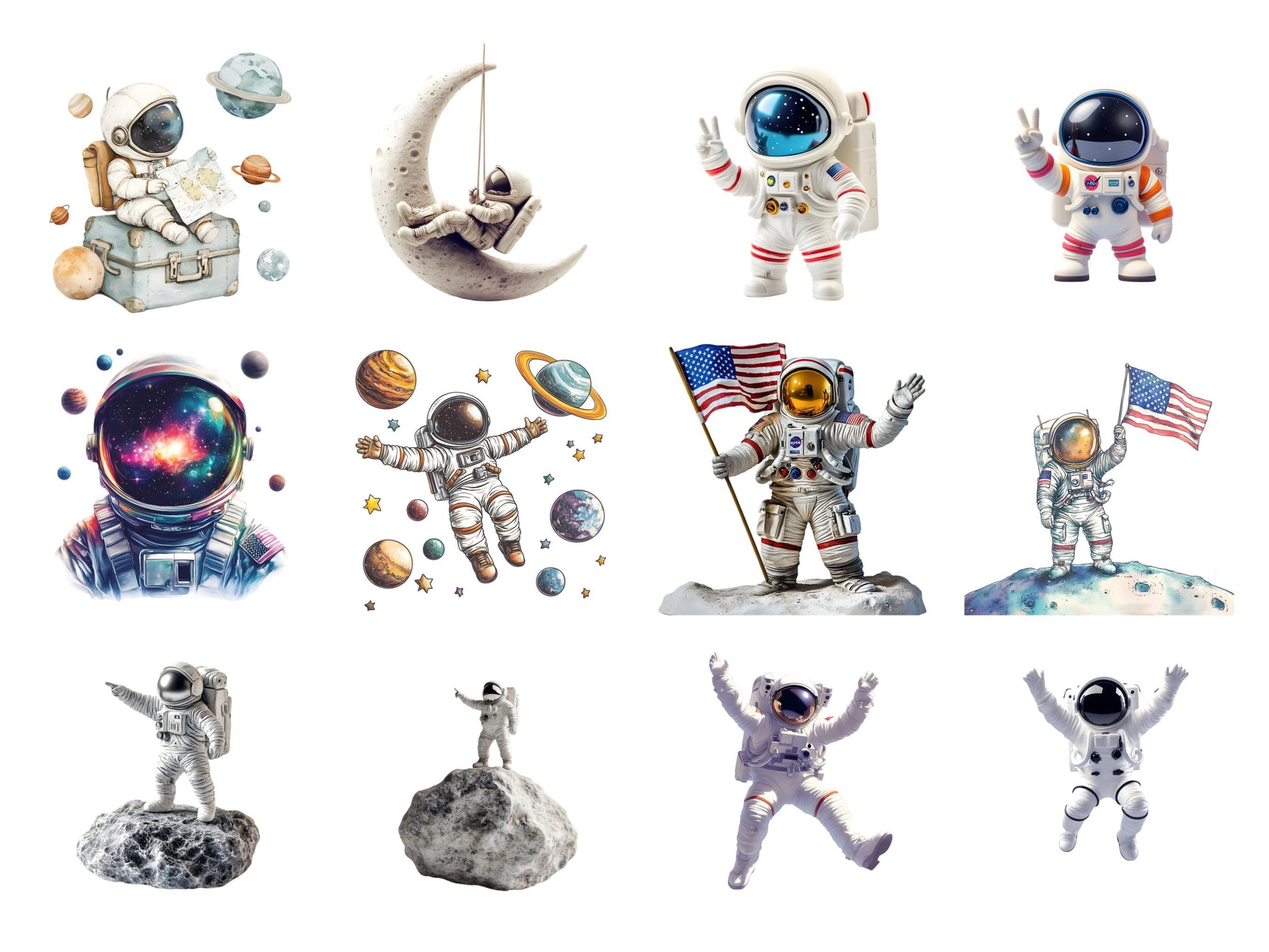 Diese Sammlung von 55 hochwertigen Astronauten-Cliparts ist perfekt, um jedem kreativen Projekt einen Hauch von Verspieltheit und Charme zu verleihen. Die hochauflösenden Designs mit transparentem Hintergrund eignen sich ideal für eine Vielzahl von Projekten – von Kindergeburtstagseinladungen über Kinderzimmerdekoration bis hin zu Scrapbooking und vielem mehr. Ob Sie individuelle Geschenke, digitale Planer oder Social-Media-Posts gestalten, diese niedlichen und vielseitigen Cliparts werden Ihre Arbeit garantiert aufwerten und jeder Kreation eine besondere Note verleihen.