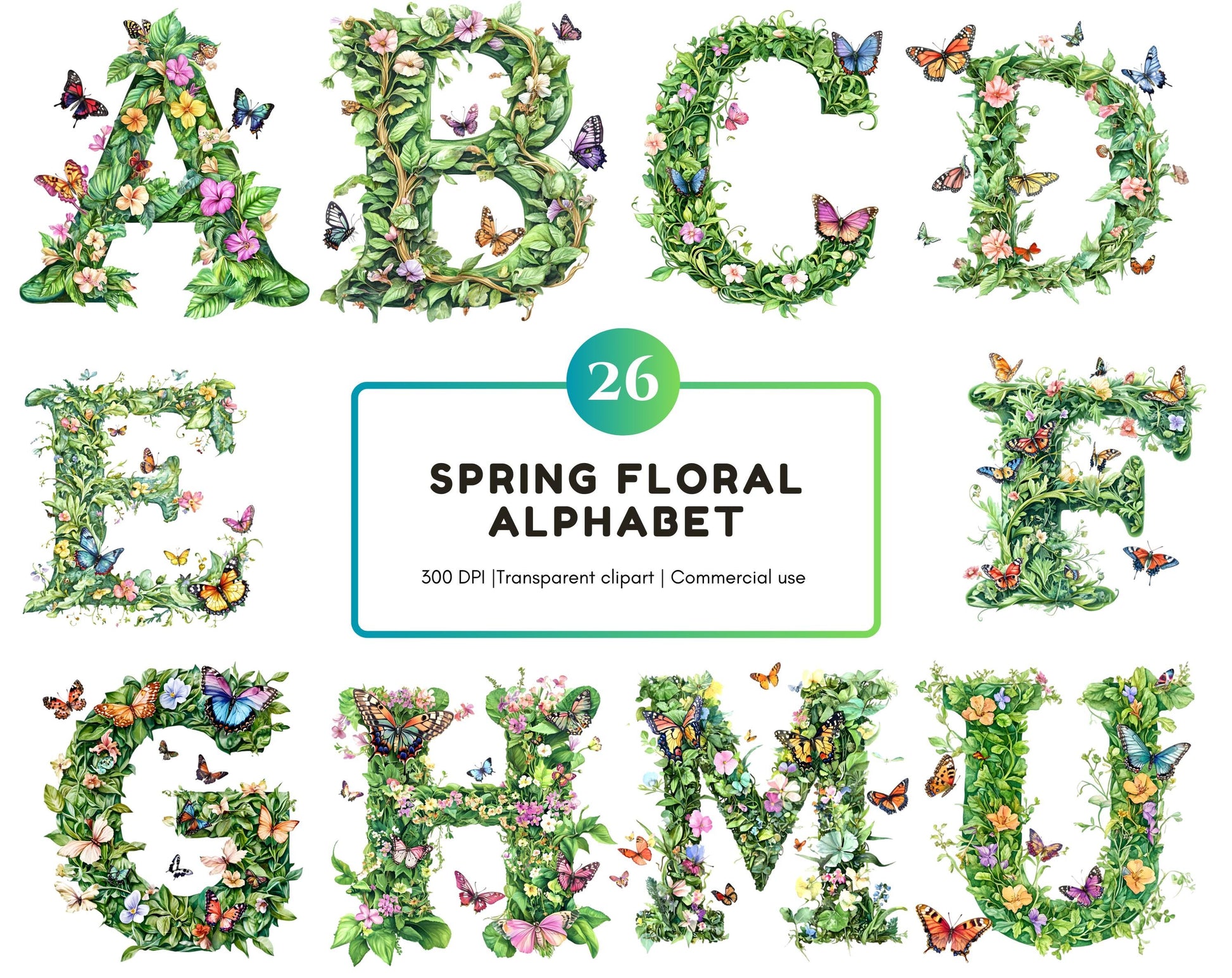 1) 26 hochwertige Clipart-Bilddateien mit floralem Alphabet und transparentem Hintergrund