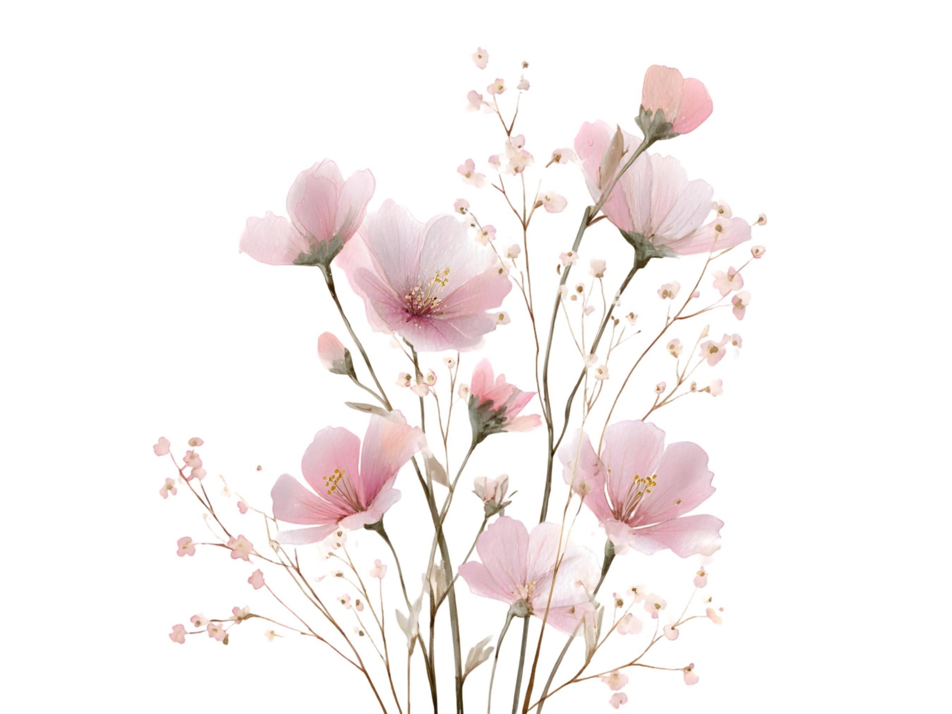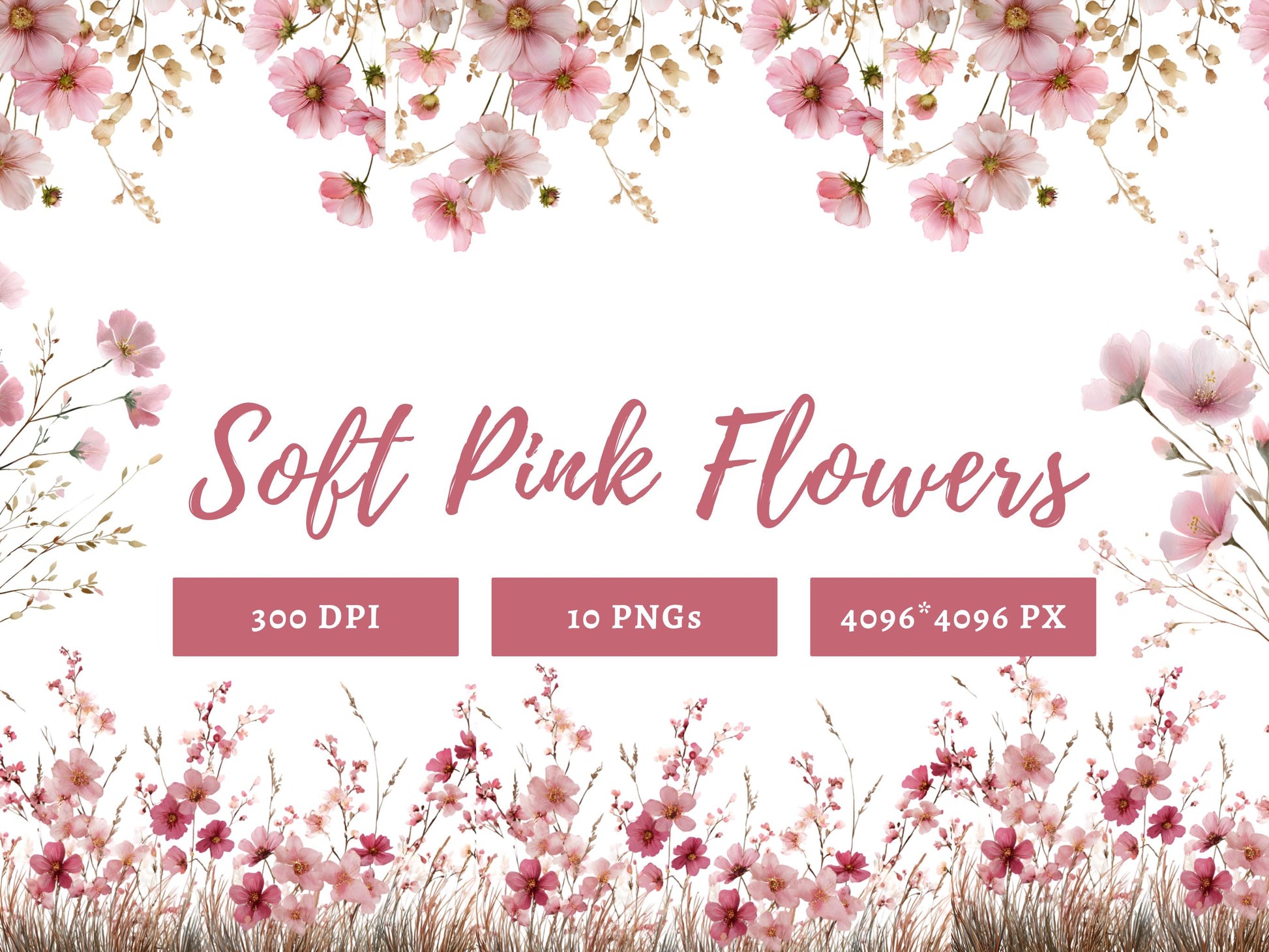 - 10 hochwertige Clipart-Bilddateien mit zartrosa Blumen und transparentem Hintergrund
