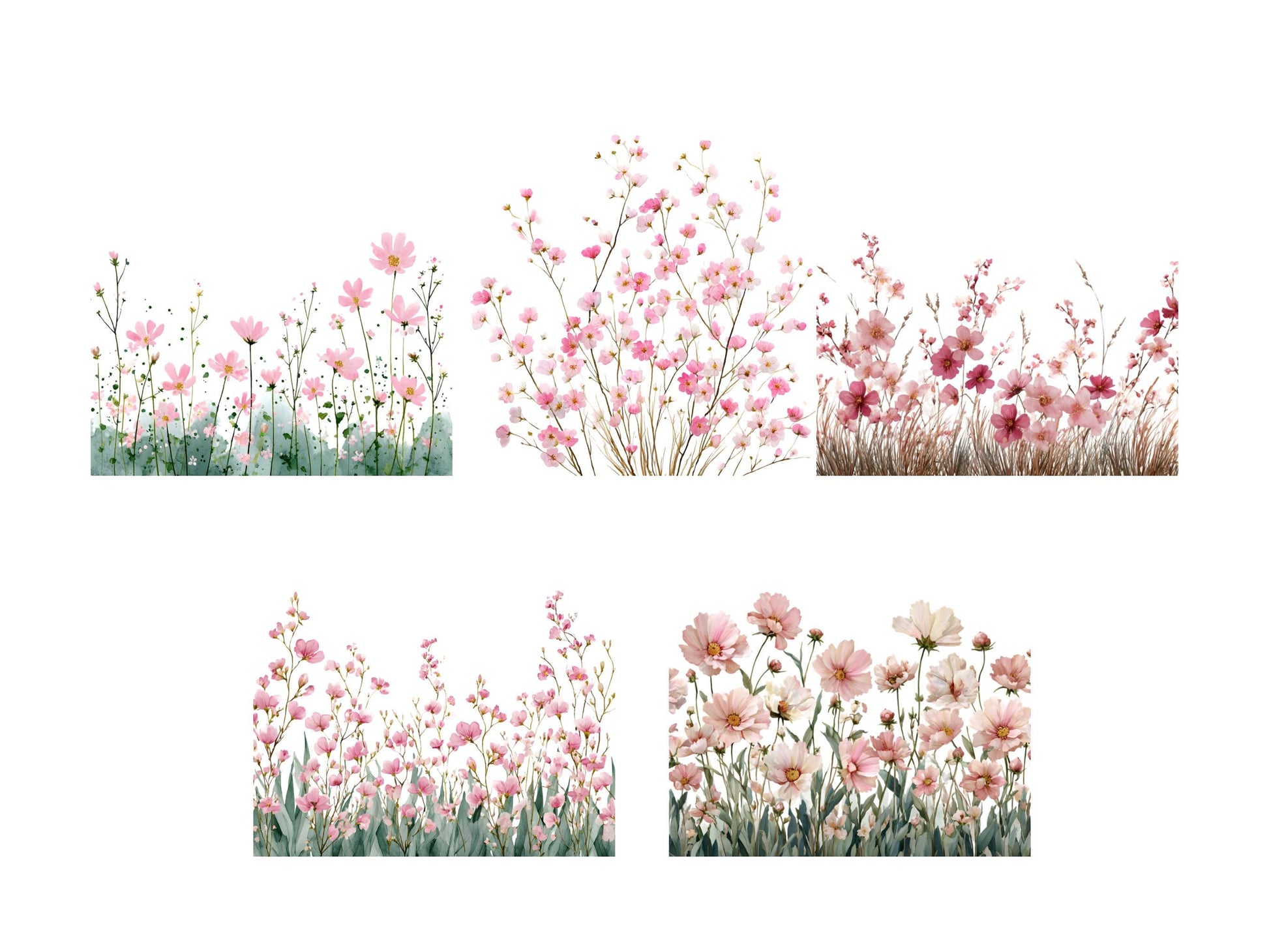Aquarell-Blumen-Clipart-Bundle (PNG), Zartrosa Blumen-Clipart, Blumen-Clipart, Blumen-PNG, Rosa Blumen-Clipart, Wildblumen-Clipart