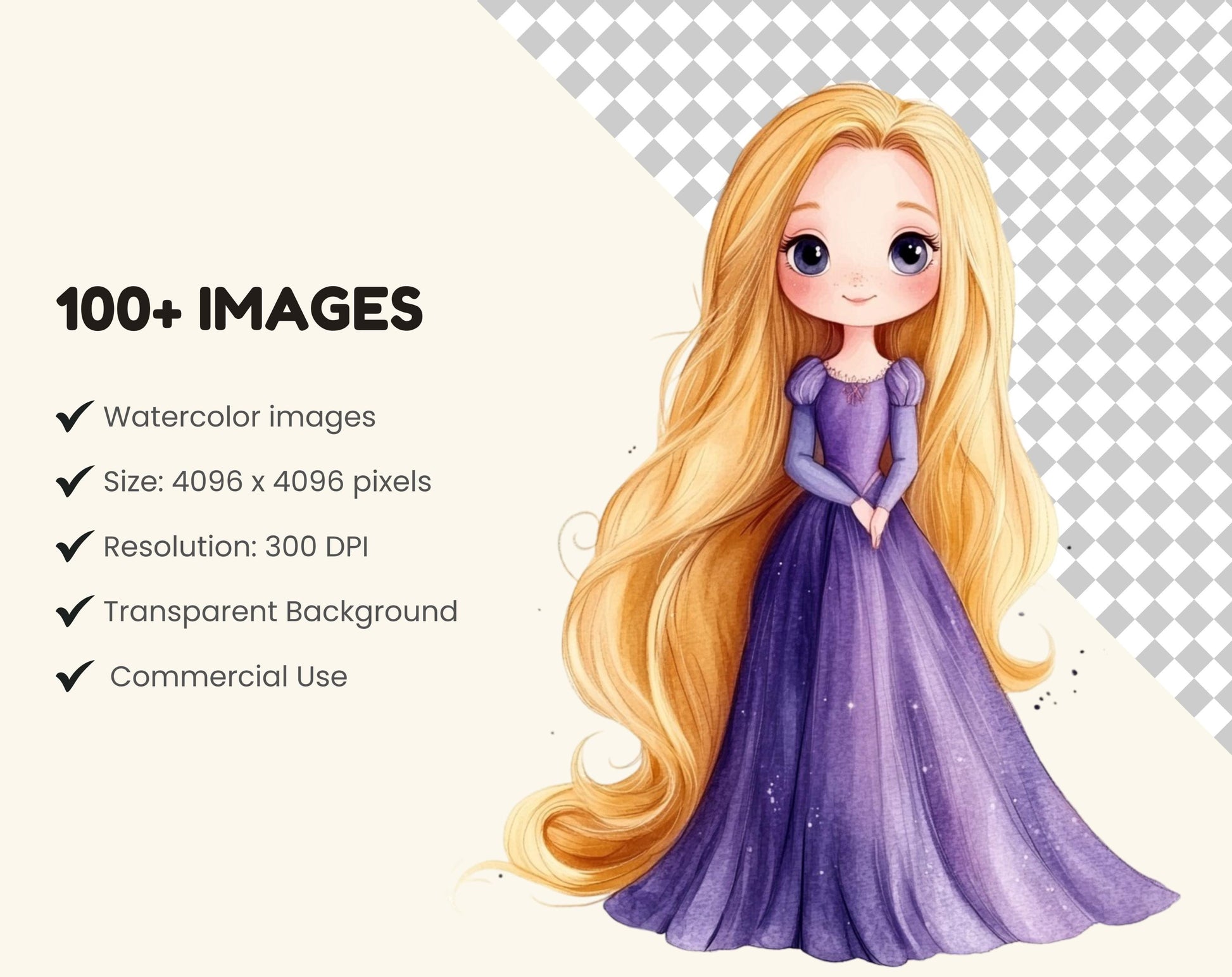 1) 118 hochwertige Clipart-Bilddateien mit Märchenprinzessinnen und transparentem Hintergrund