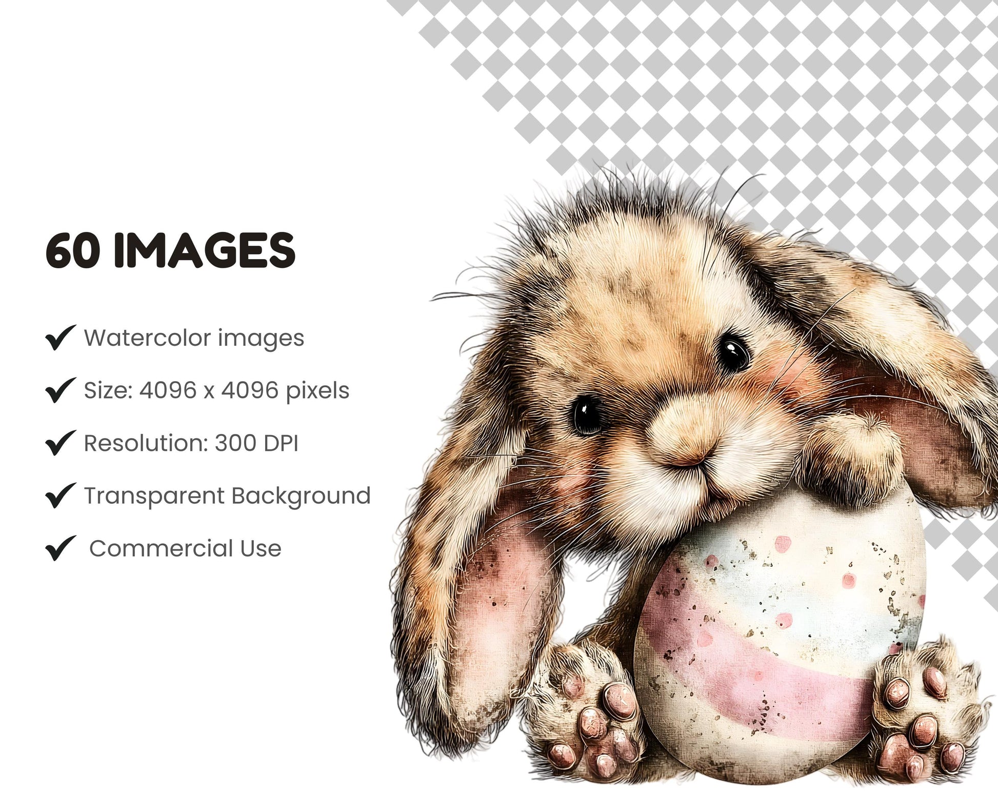 1) 60 hochwertige Osterhasen-Clipart-Bilddateien mit transparentem Hintergrund
