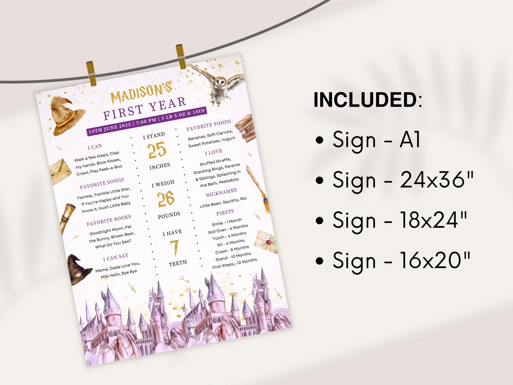 Meilensteintafel zum Zauberergeburtstag, bearbeitbare Meilensteintafel zum ersten Geburtstag, magisches Poster zum 1. Geburtstag, Meilensteintafel zum Geburtstag des Auserwählten
