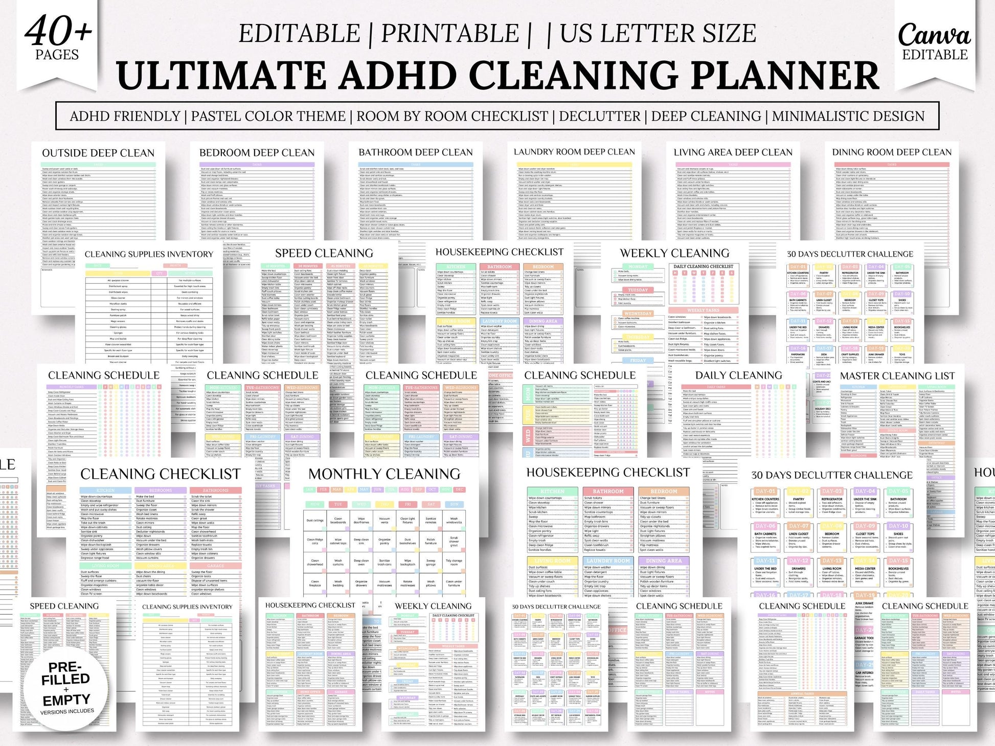 Planificateur de ménage ultime pour les personnes atteintes de TDAH – Modifiable | Imprimable | Format Lettre US | 42 pages