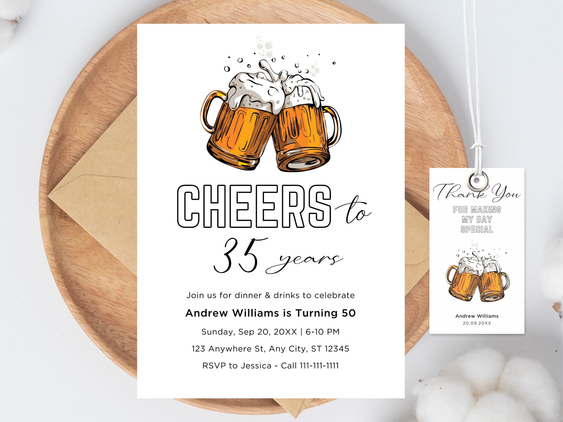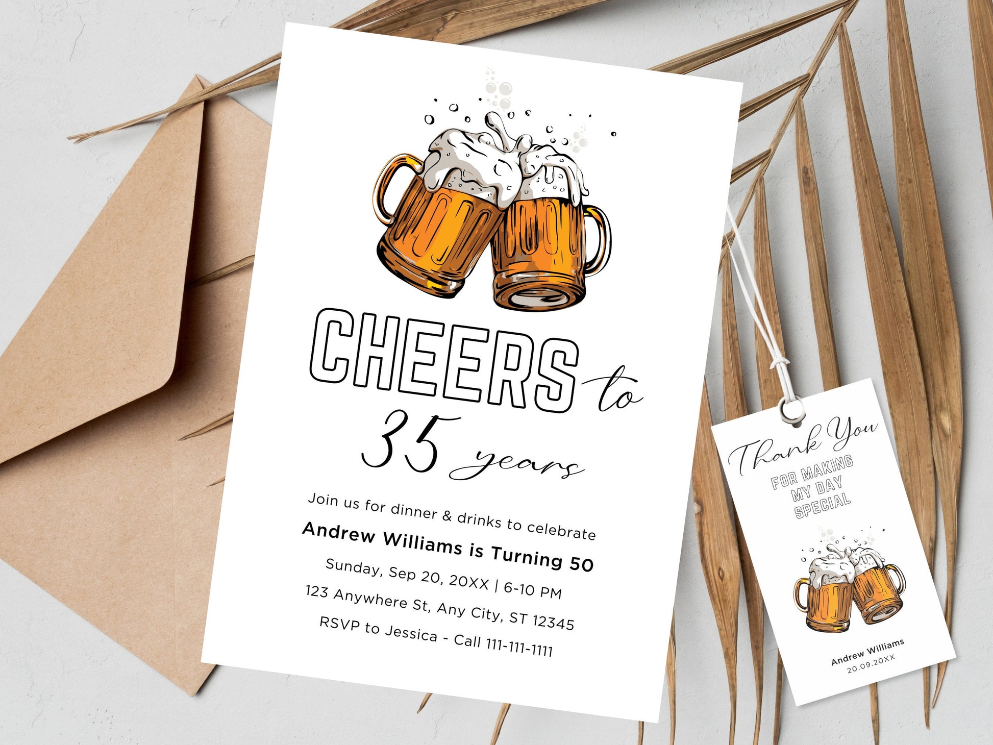Invitation d'anniversaire Cheers and Beers : Invitation pour une fête d'adultes (Téléchargement numérique)