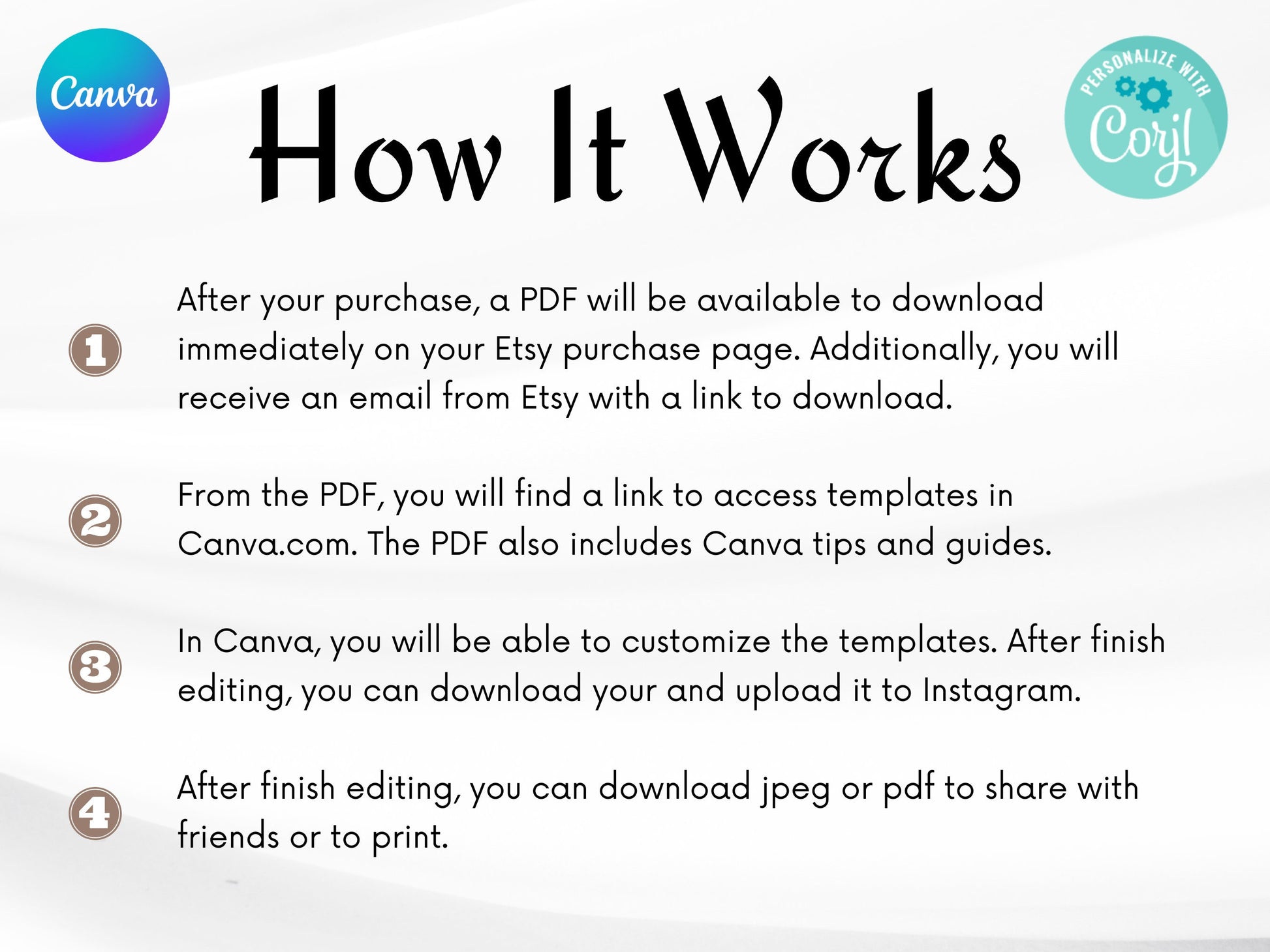 Après l'achat de ce fichier, vous êtes autorisé à l'utiliser autant de fois que vous le souhaitez pour votre usage personnel, mais vous n'êtes pas autorisé à le revendre, à le modifier ou à vous l'approprier.
