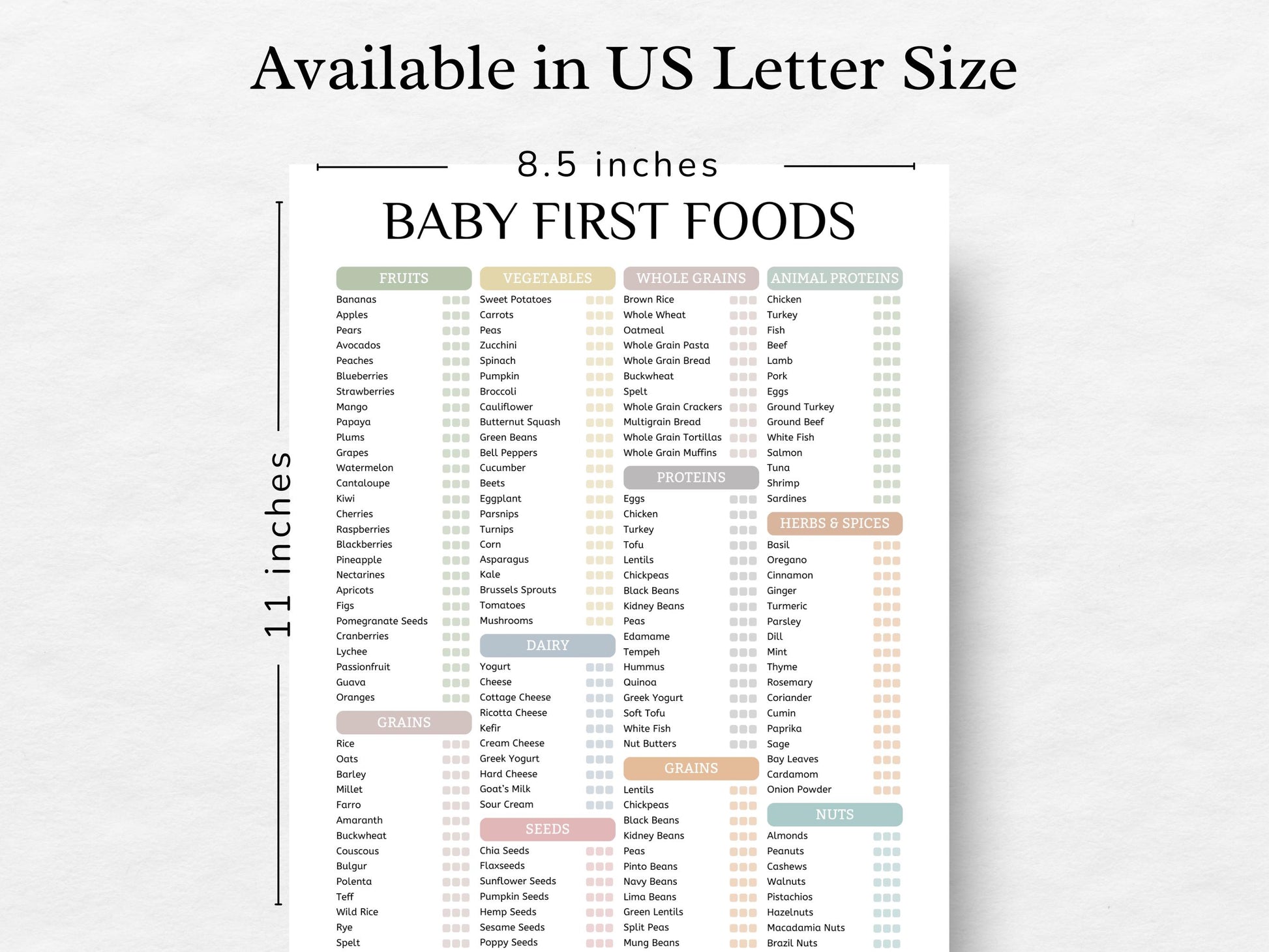 Liste modifiable des premiers aliments pour bébé, tableau de diversification alimentaire, liste de plus de 160 premiers aliments, suivi de l'alimentation pour les nouvelles mamans, journal alimentaire pour bébé, téléchargement numérique