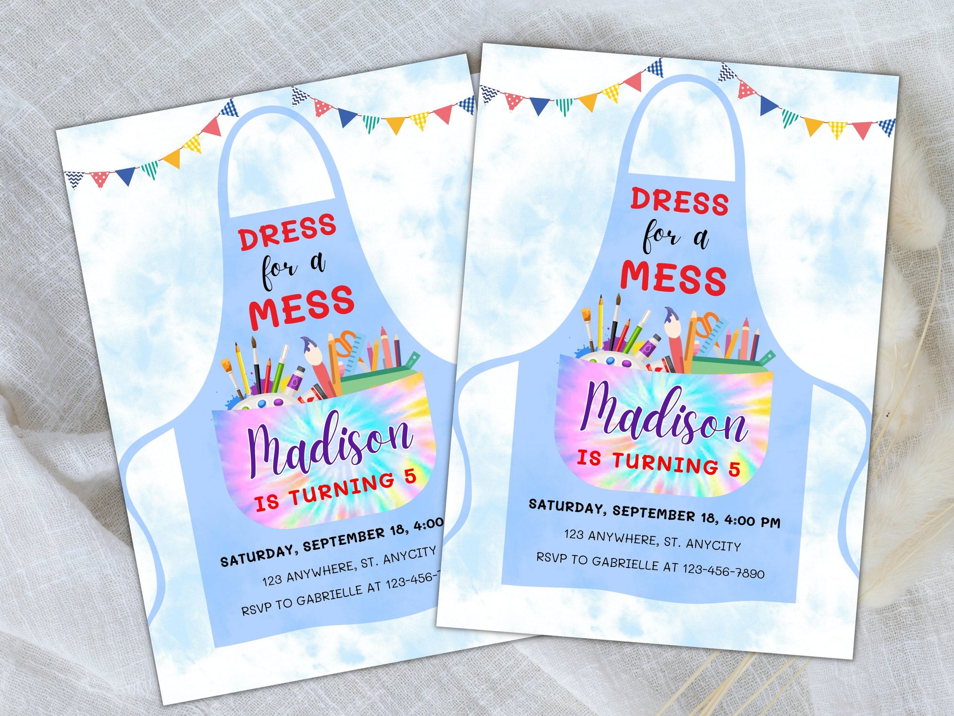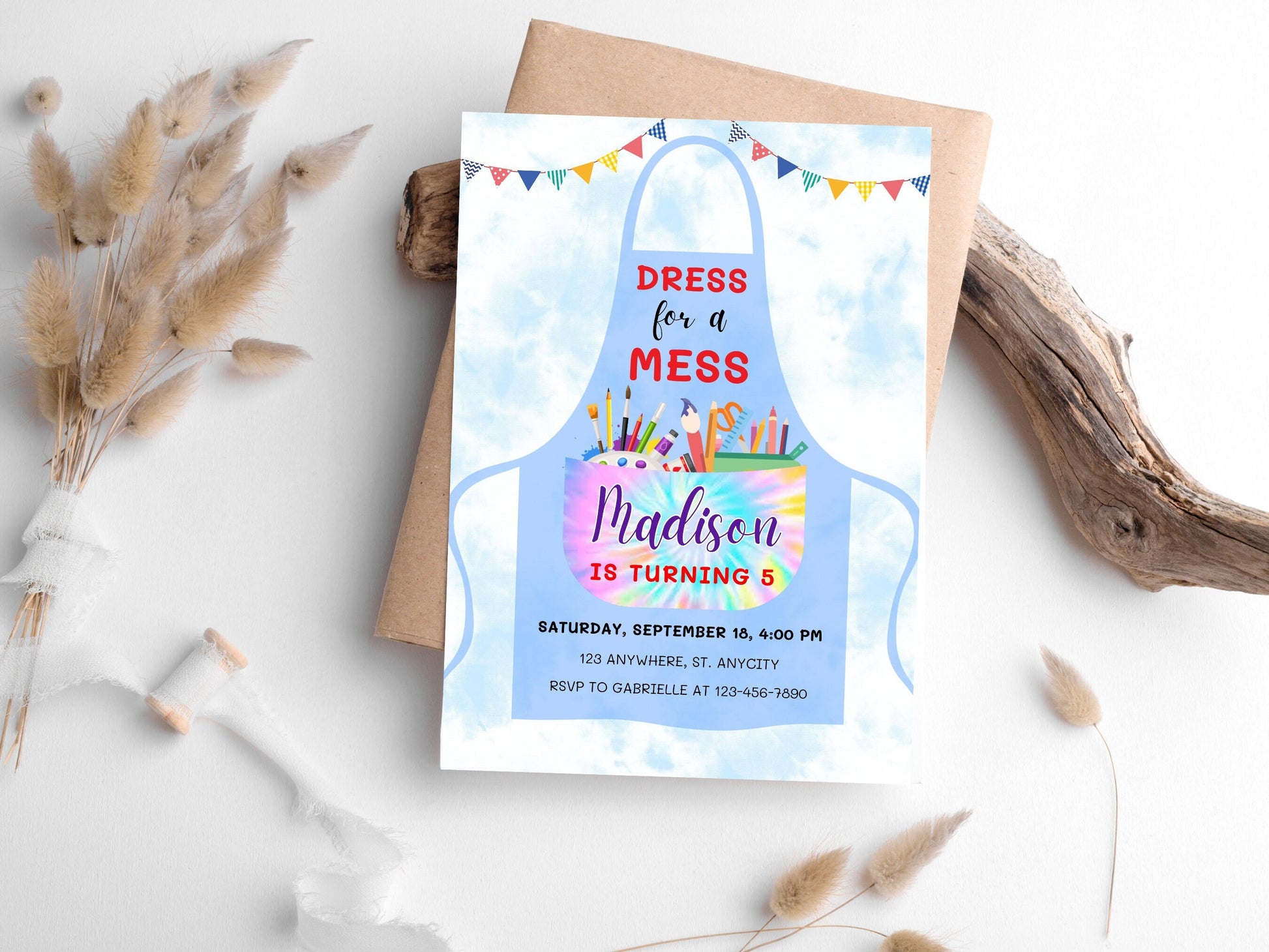 Invitation d'anniversaire personnalisable avec motif de peinture, thème artistique coloré (téléchargement instantané)