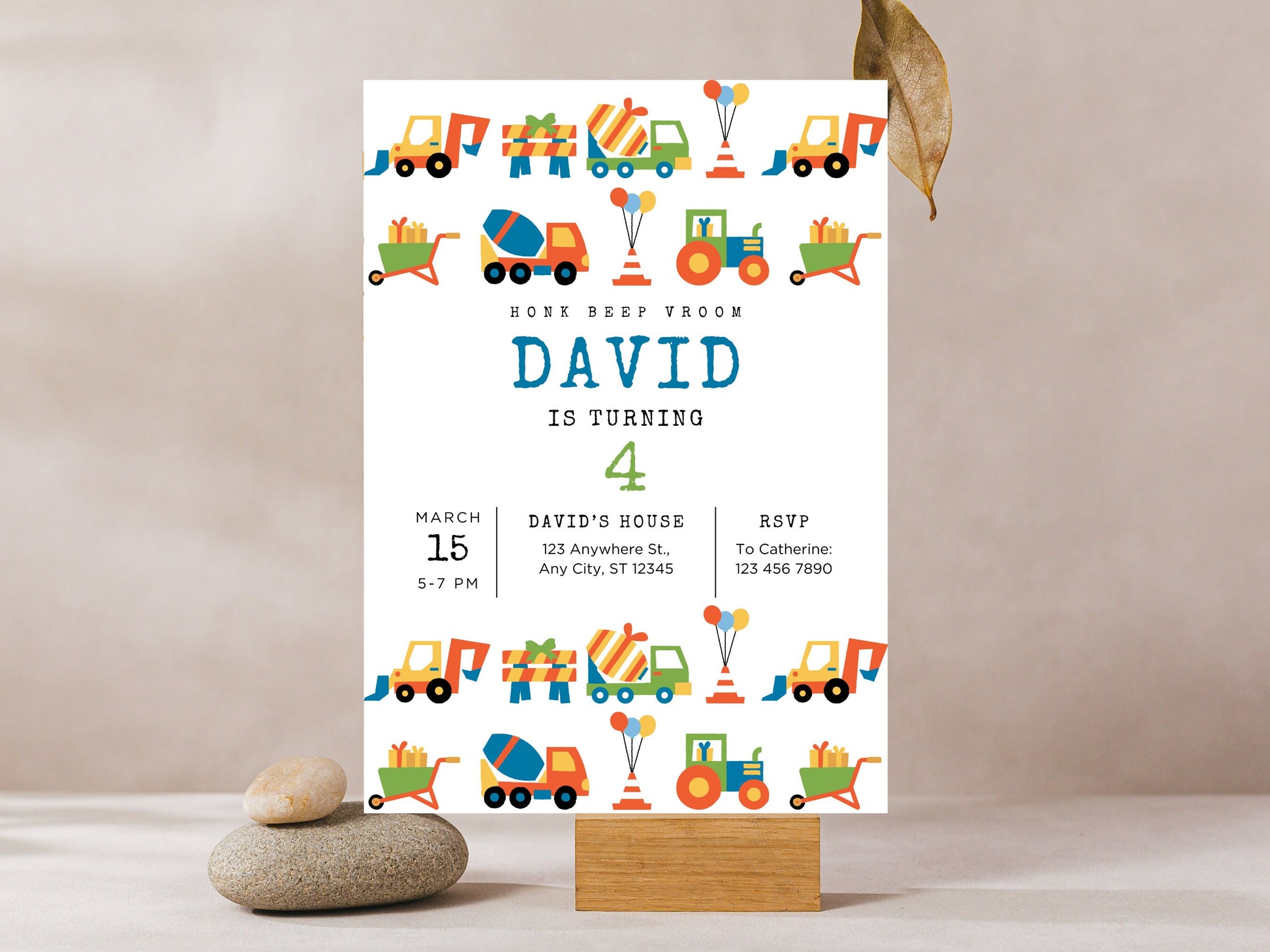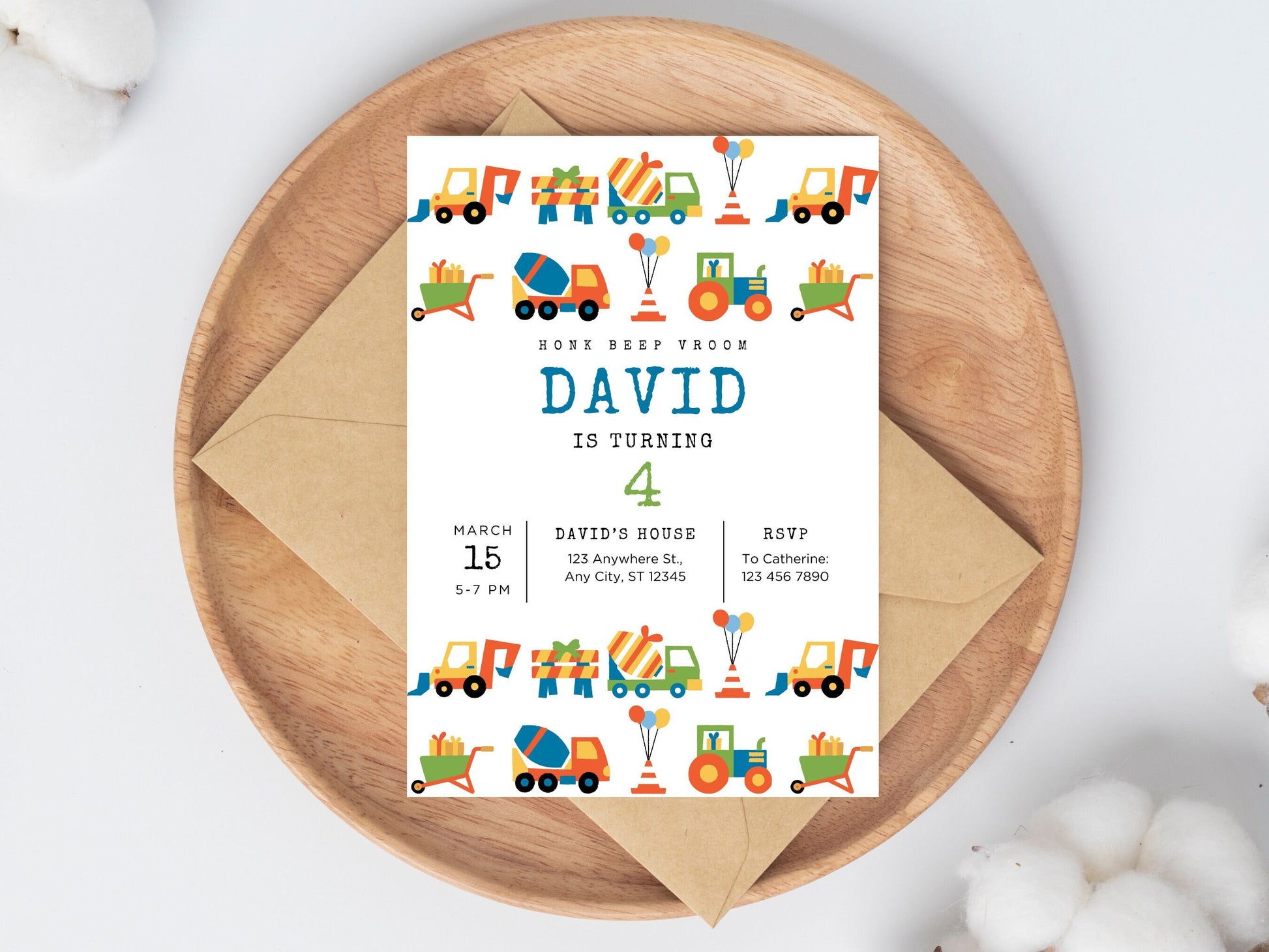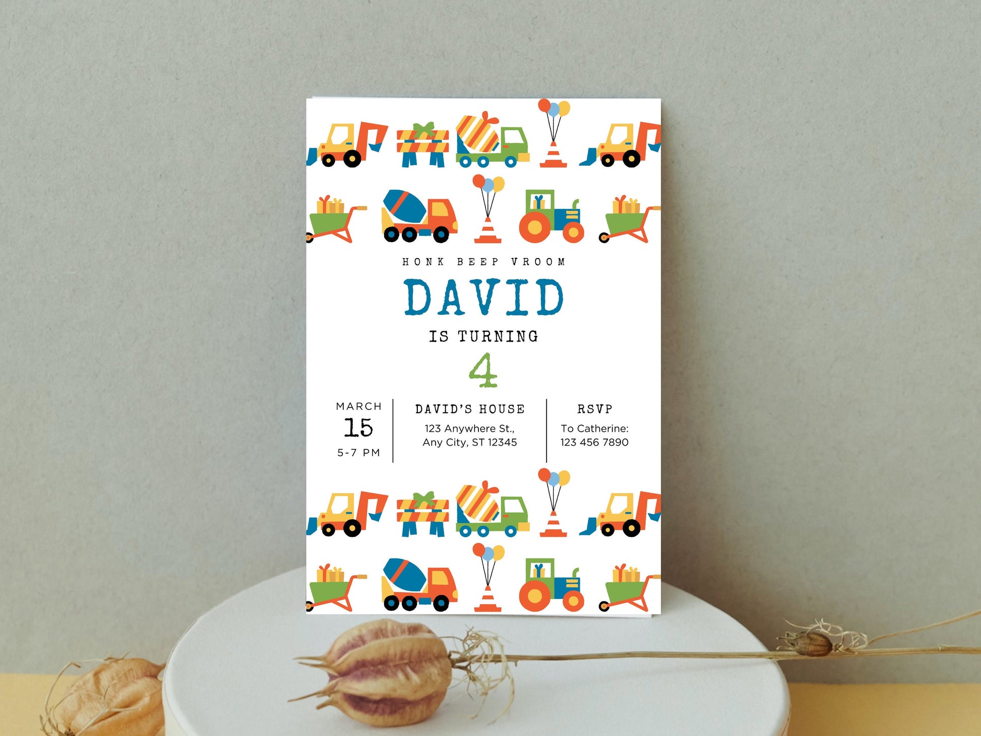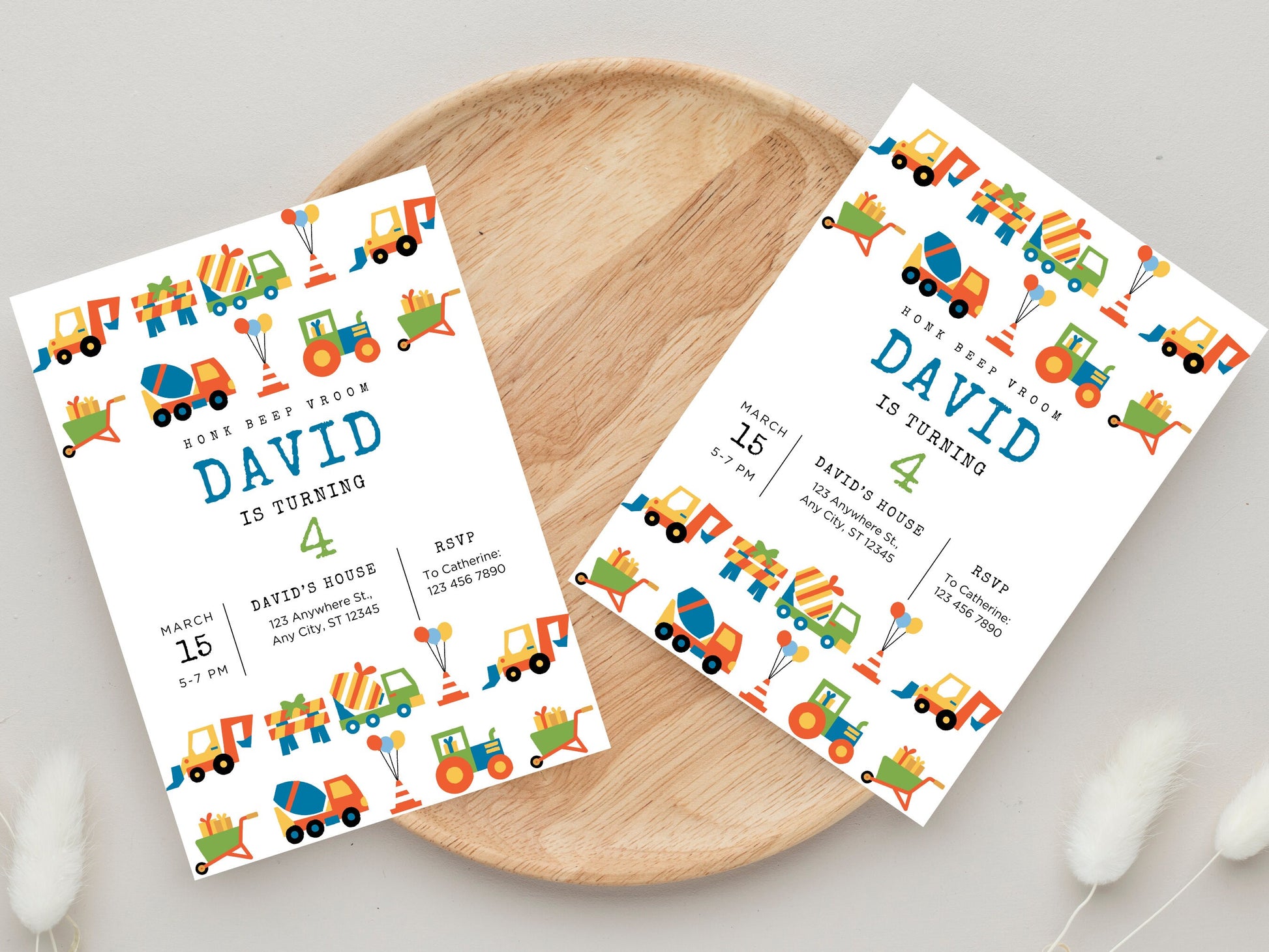 Invitation d'anniversaire sur le thème des transports, véhicules, camions et voitures (Téléchargement instantané)