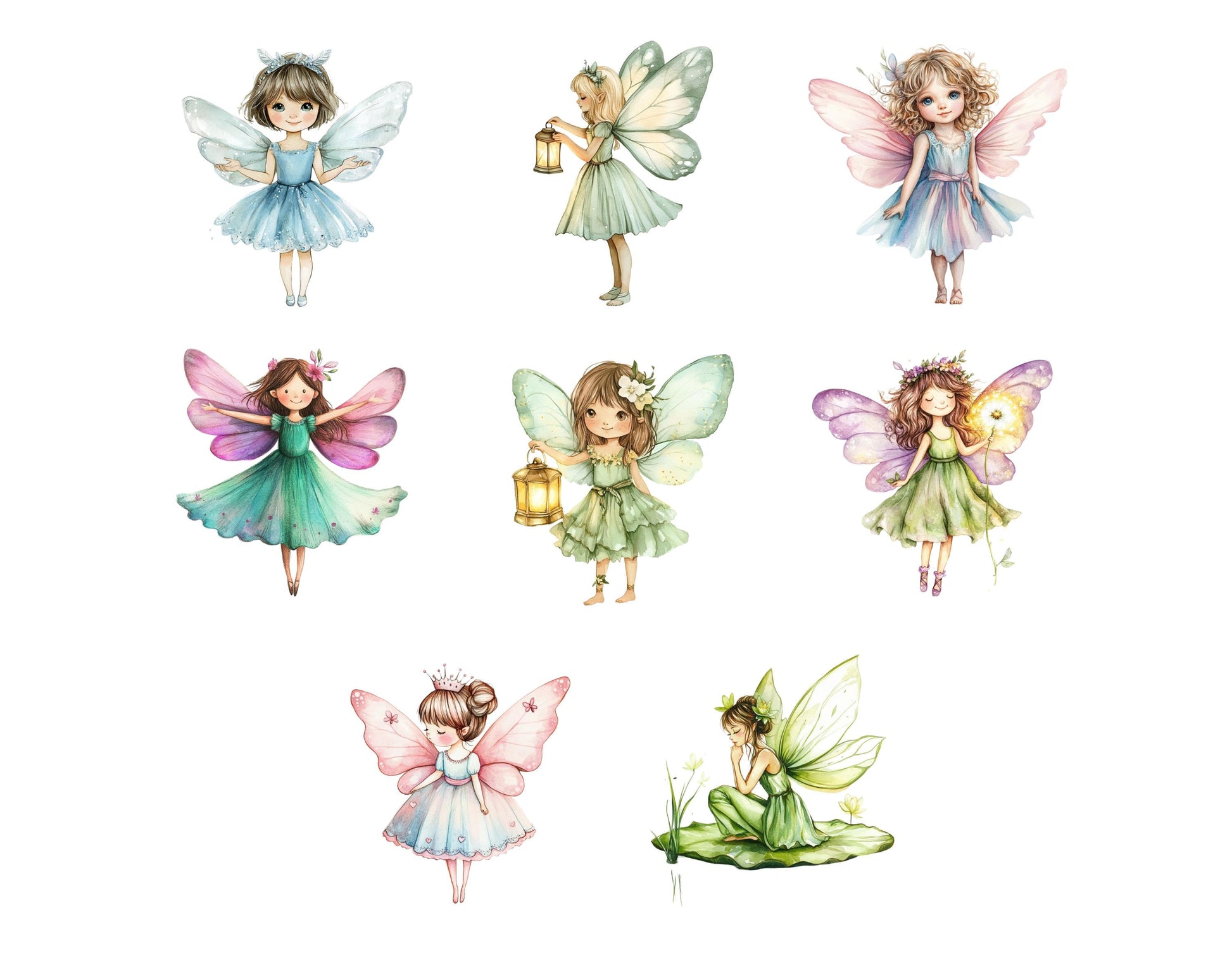 Ensemble d'images clipart PNG aquarelle de jardin féerique, images clipart PNG de fées de jardin magique, images clipart de fées fantastiques mignonnes, images clipart PNG pour un premier anniversaire de fée