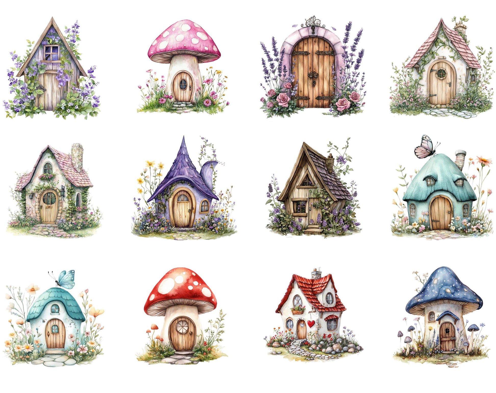 Ensemble d'images clipart aquarelle pour jardin féerique, graphismes fantastiques (téléchargement numérique)