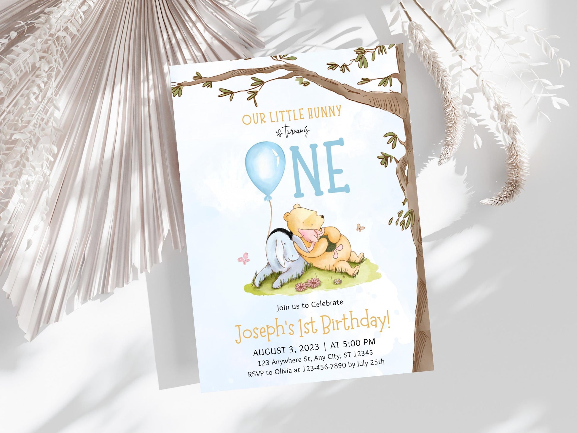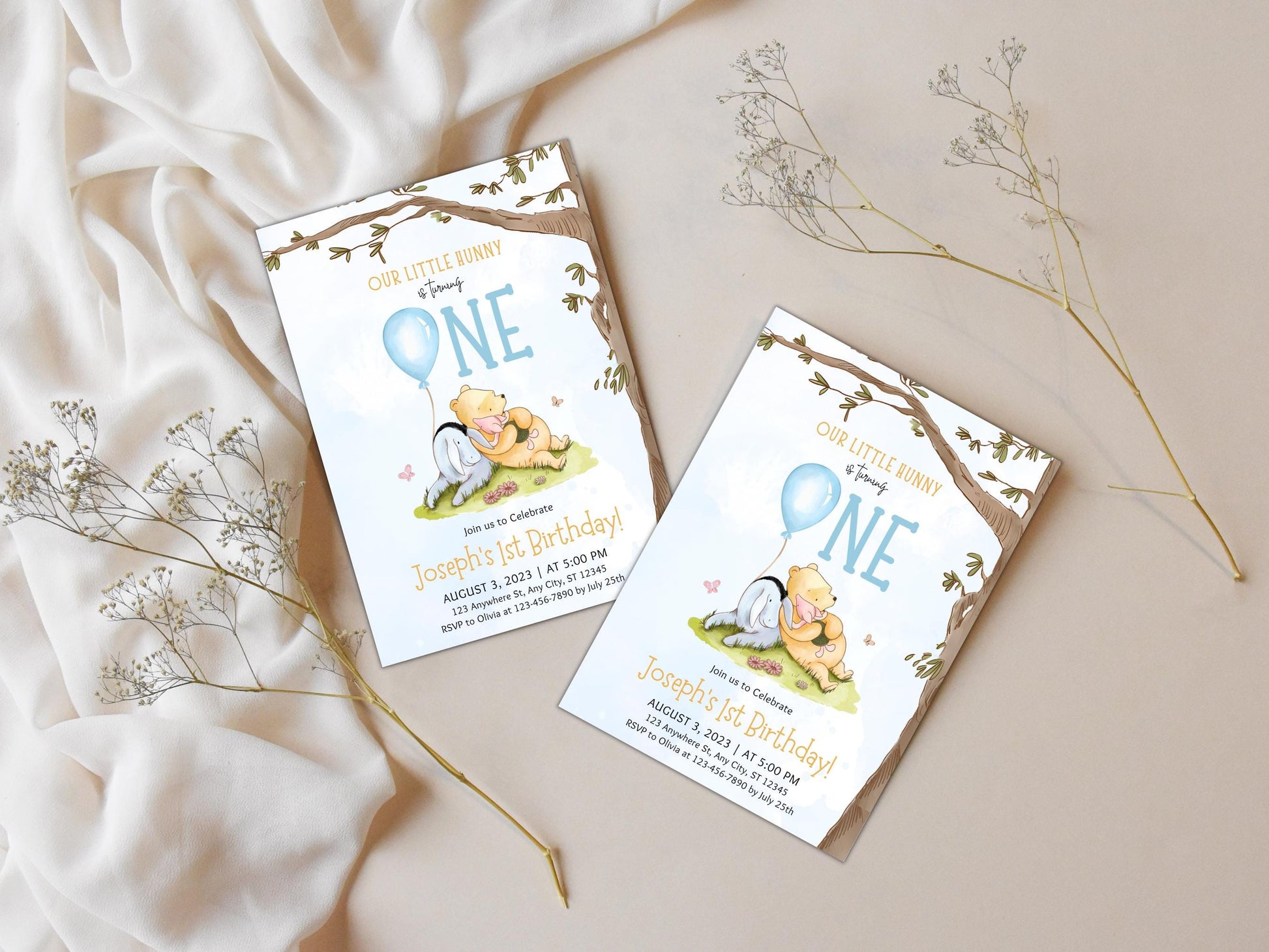 Modèle d'invitation pour le 1er anniversaire de Winnie l'Ourson (Téléchargement numérique)