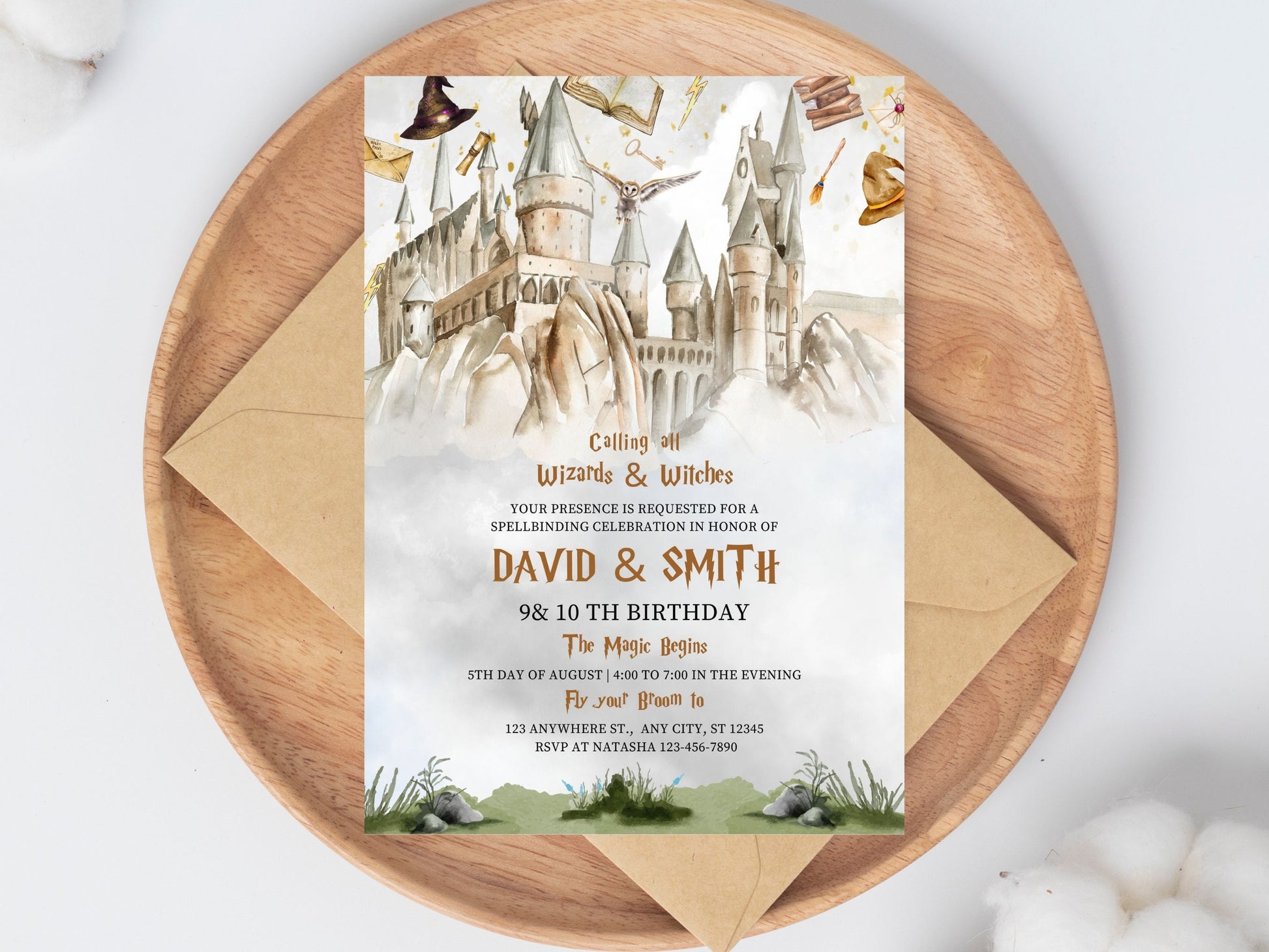 Invitation d'anniversaire sur le thème de la magie (modifiable), invitation pour les frères et sœurs, invitation pour une fête d'anniversaire magique, fête d'anniversaire sur le thème de l'école de magie