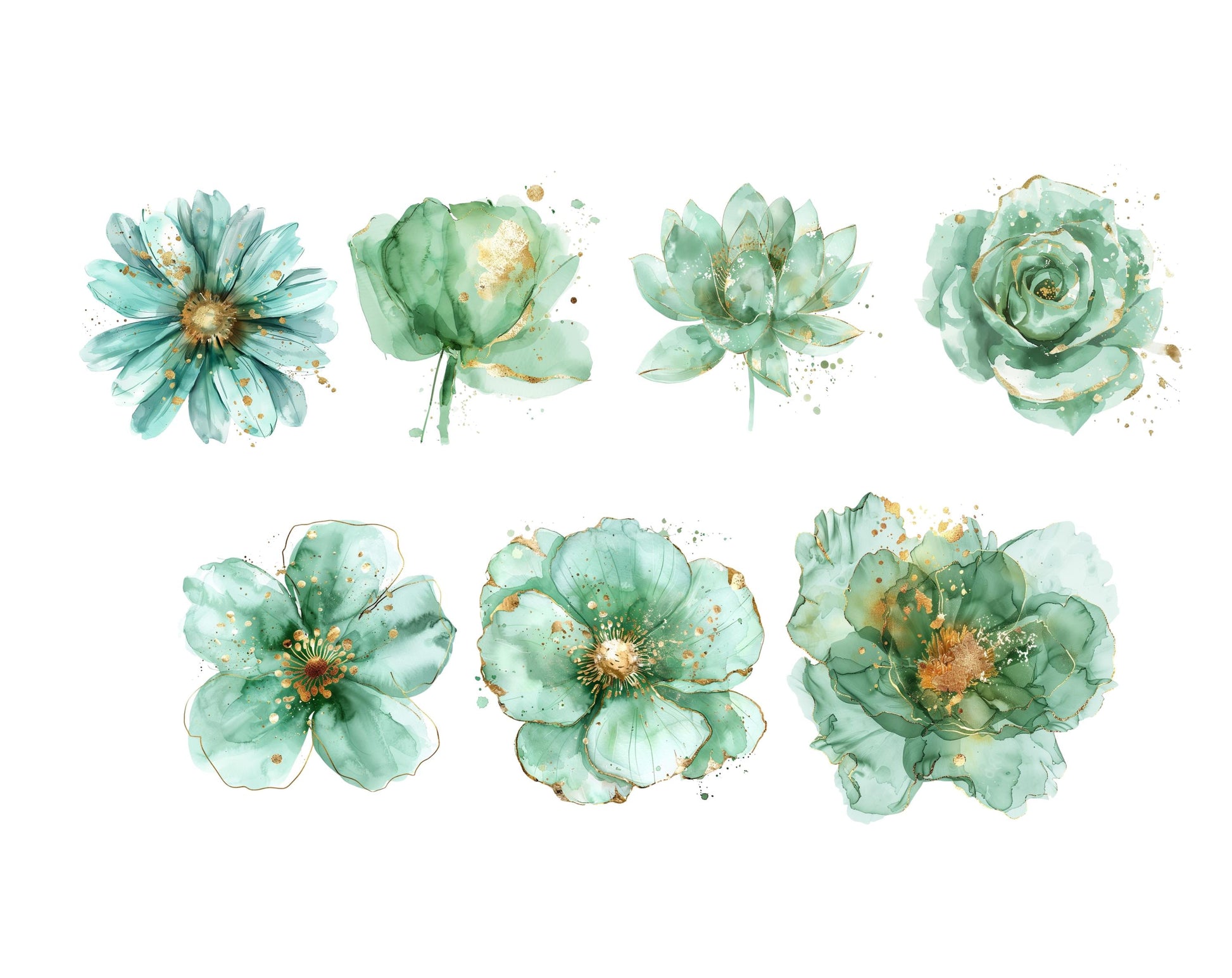 30 Abstract Flower Clipart png Bundle, Green Flower Clipart, Watercolor Floral Clipart, Floral Bouquet png, Commercial Use, Digital Download