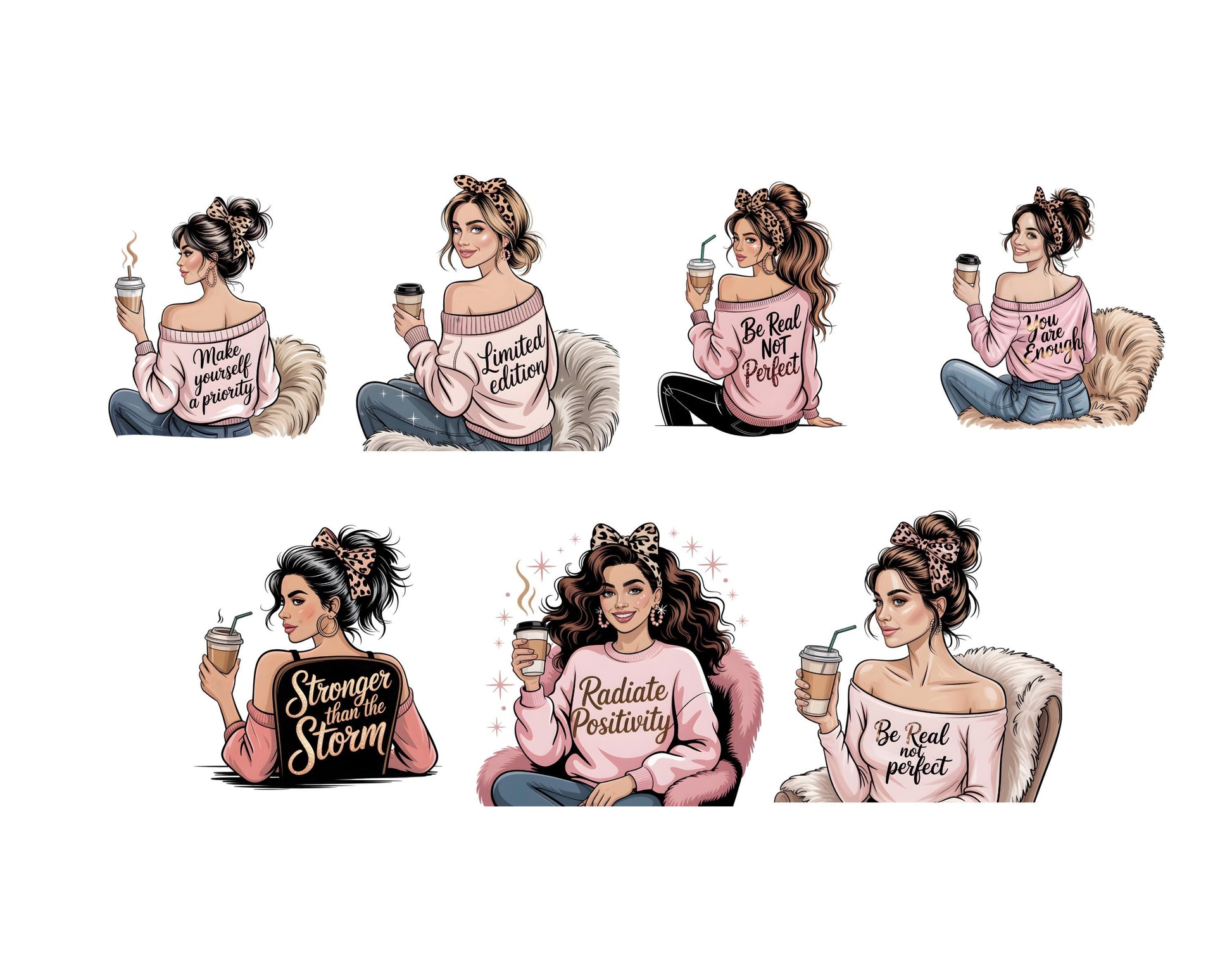 This set of 35 high-quality Boss Lady clipart illustrations is ideal for infusing creativity and charm into any project. Showcasing high-resolution graphics with transparent backgrounds, these whimsical images are perfect for a variety of uses, from children's party invitations to nursery decorations, scrapbooking, and beyond. Whether you’re designing personalized gifts, digital planners, or social media graphics, these charming and adaptable clipart illustrations are guaranteed to elevate your work and bring a delightful flair to every project.