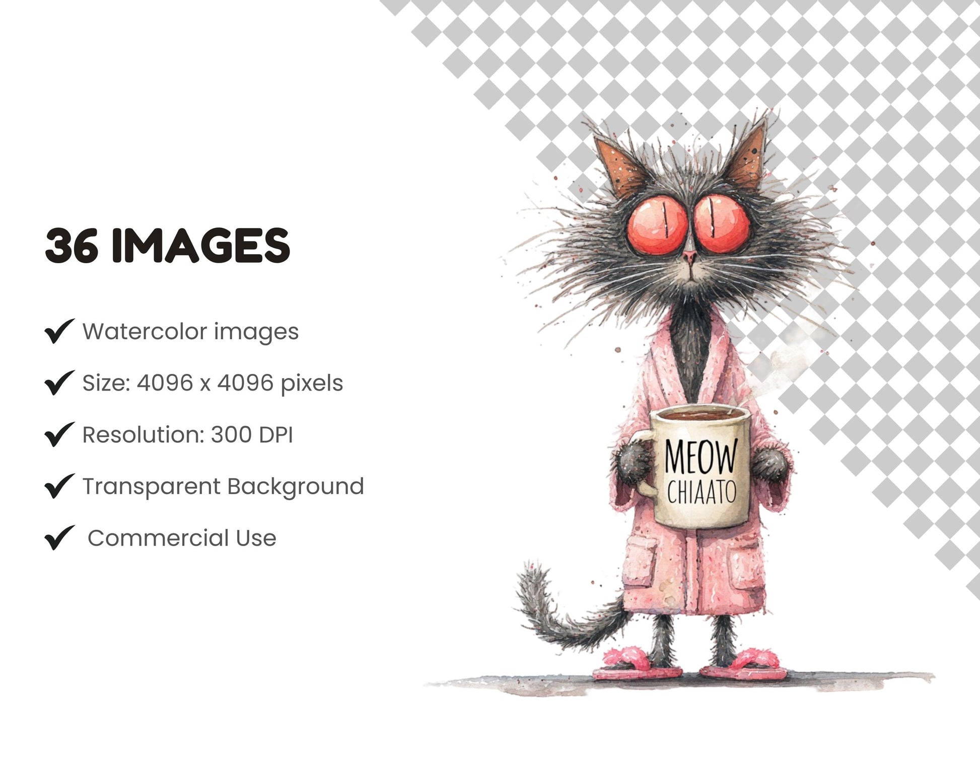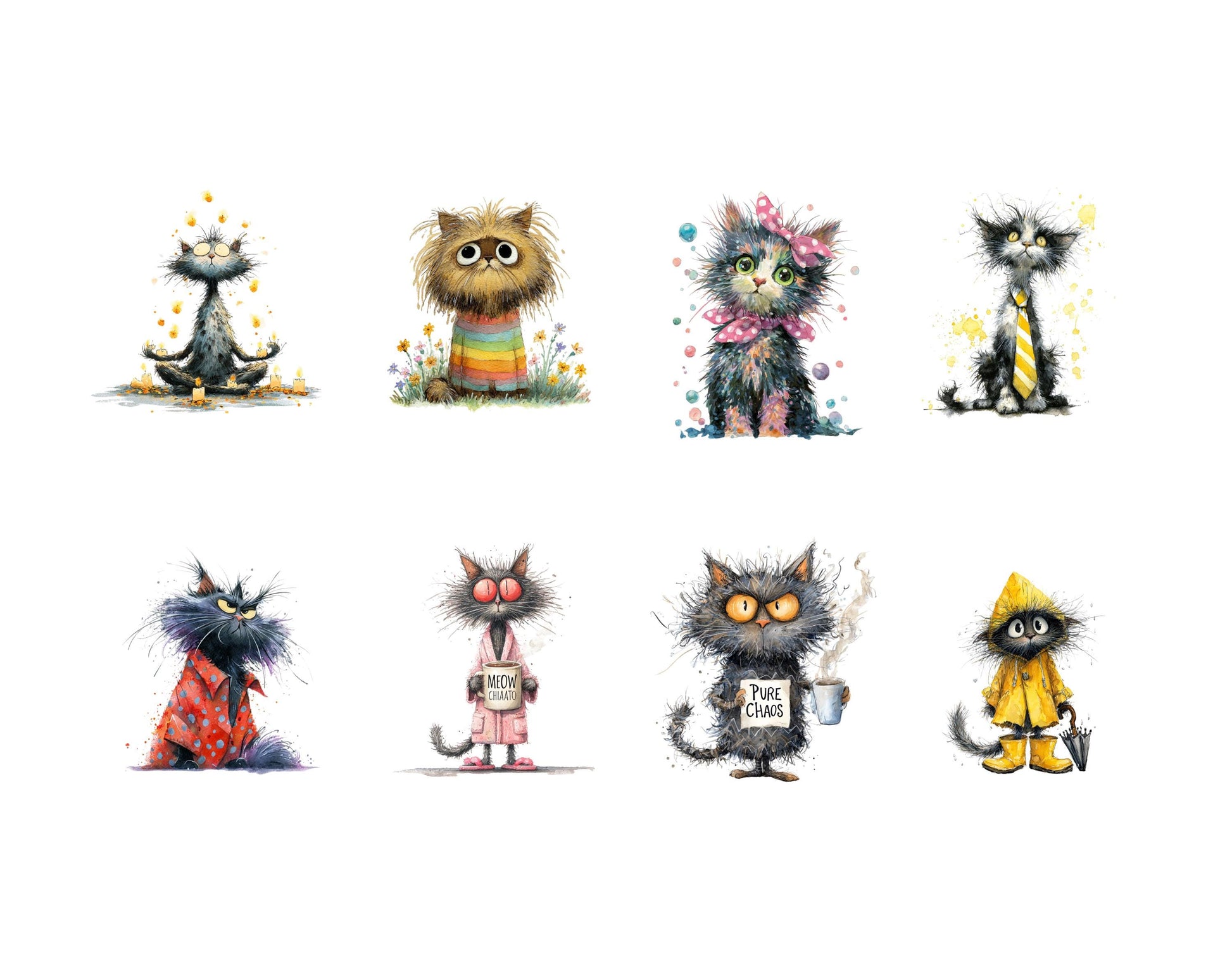 36 Watercolor Quirky Cats Clipart Bundle, Whimsical Cat Clipart, Funny Cat png, Junk Journal, Cat png, Cute Cats Clipart, Digital Download