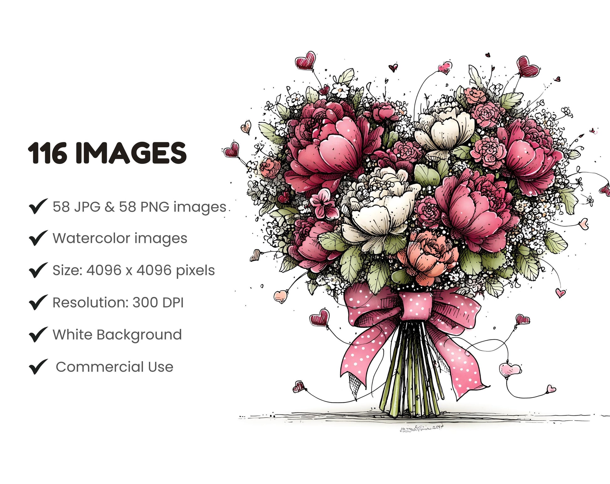 58 Whimsical Valentine's Day Clipart Bundle, Watercolor Valentine PNG & JPG, Sweet Graphics, Paper Craft, Commercial Use, Instant Download