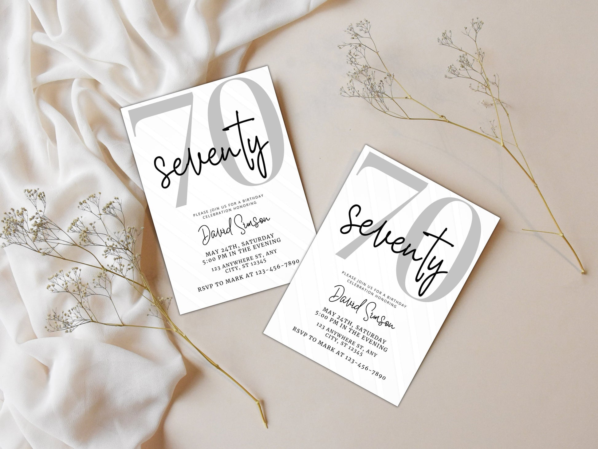 70th Birthday Invitation Template, 70th Birthday Invitation Template, Simple 70th Invitation, Male 70th Invites Editable, Instant Download