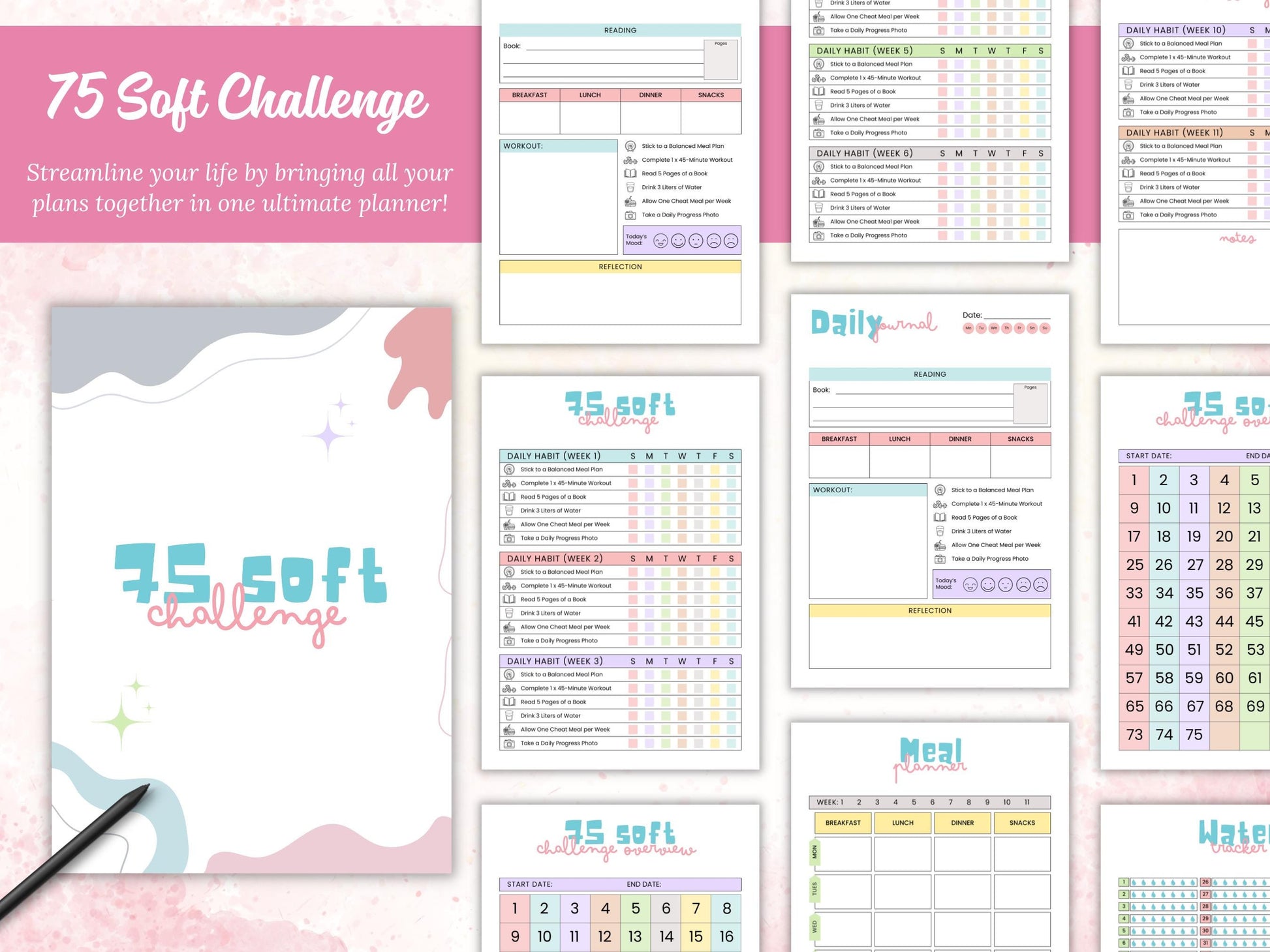 Stay motivated, organized, and consistent throughout your 75 Soft journey with this beautifully designed Printable & Editable 75 Soft Challenge Planner. Whether you're starting fresh or restarting your wellness routine, this planner gives you all the tools you need to build healthier habits—one day at a time!