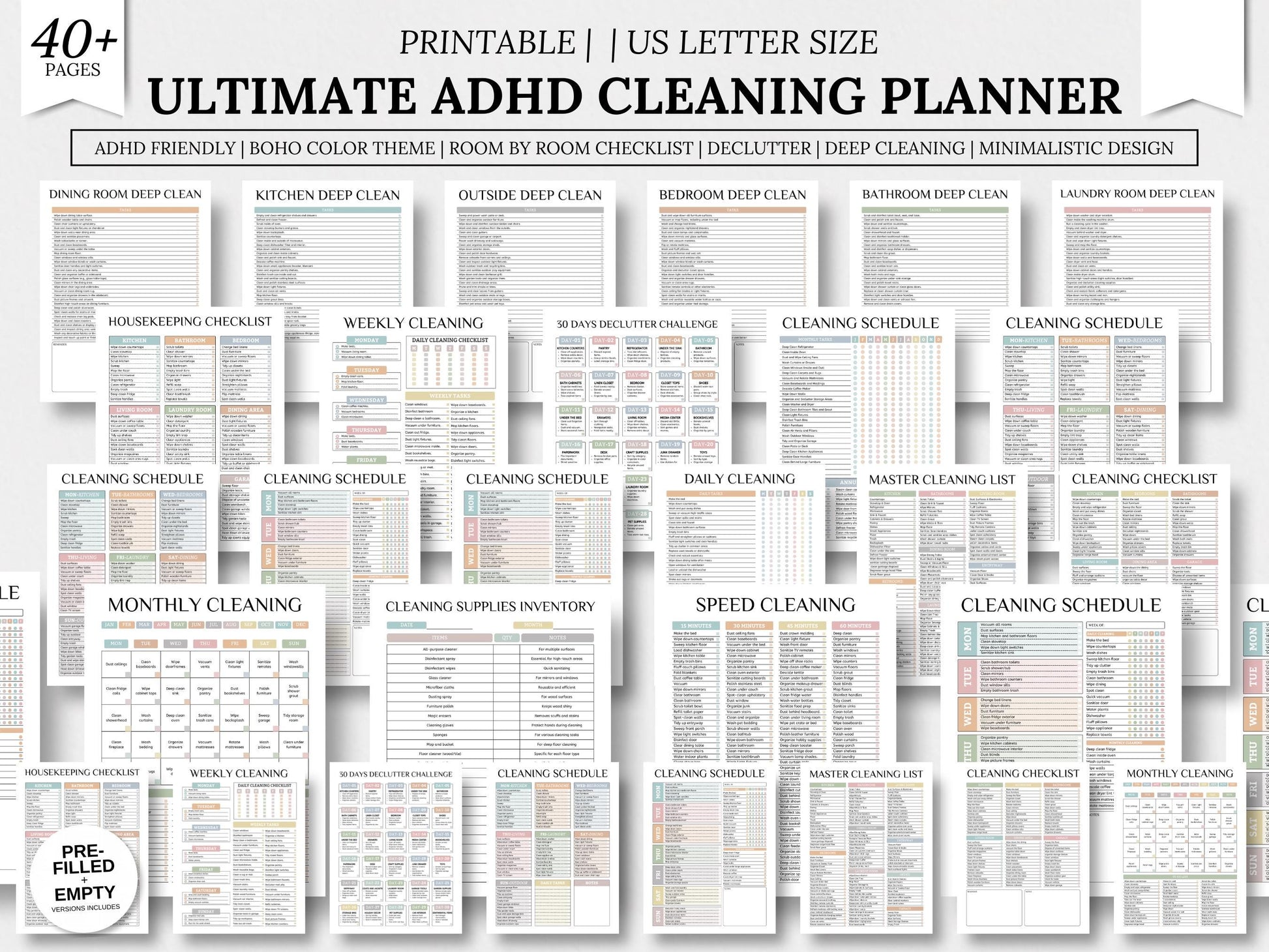 Ultimate ADHD Cleaning Planner – Printable | US Letter Size | 42 Pages