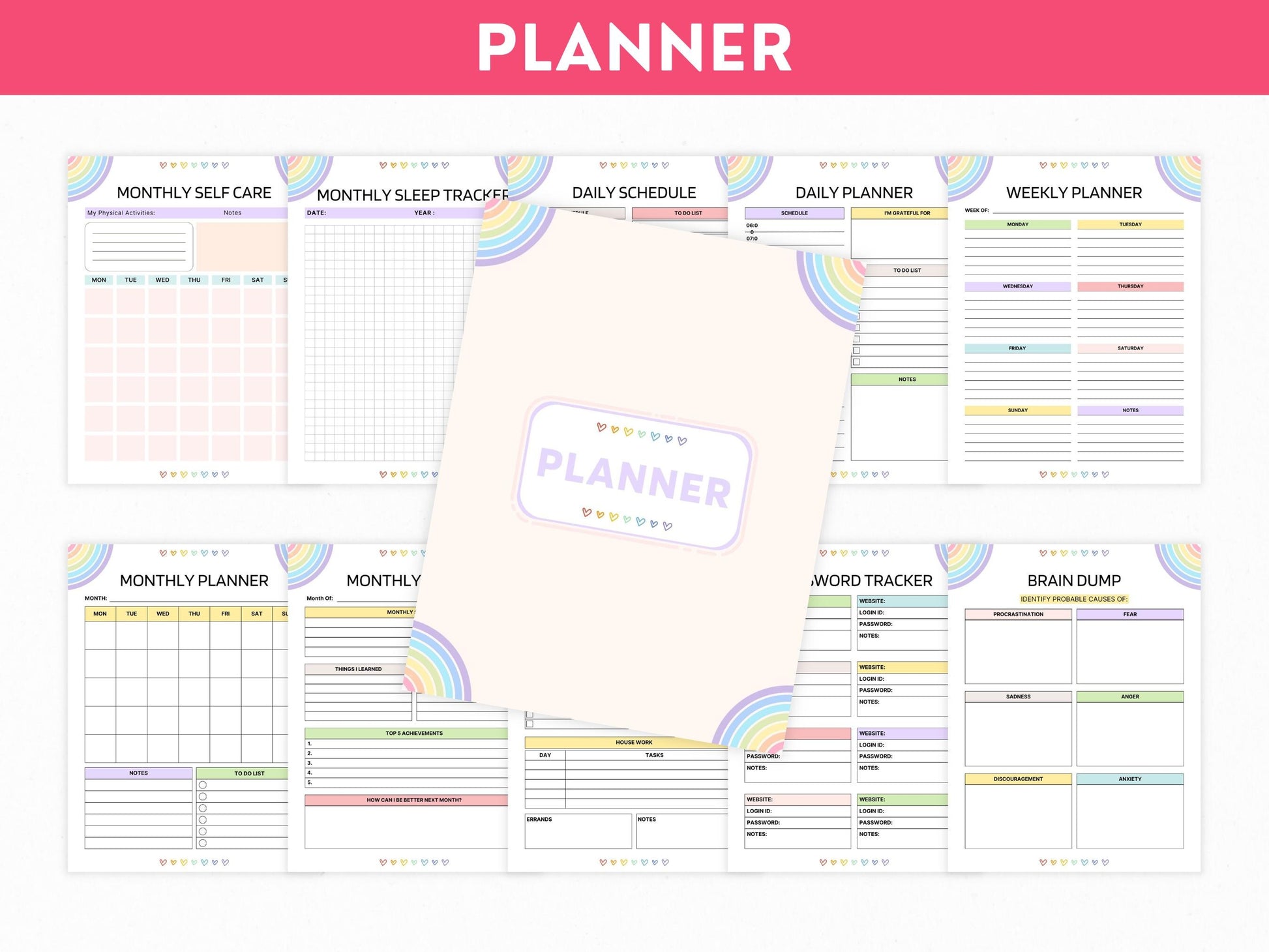 ✔ Monthly & Daily Self-Care Trackers