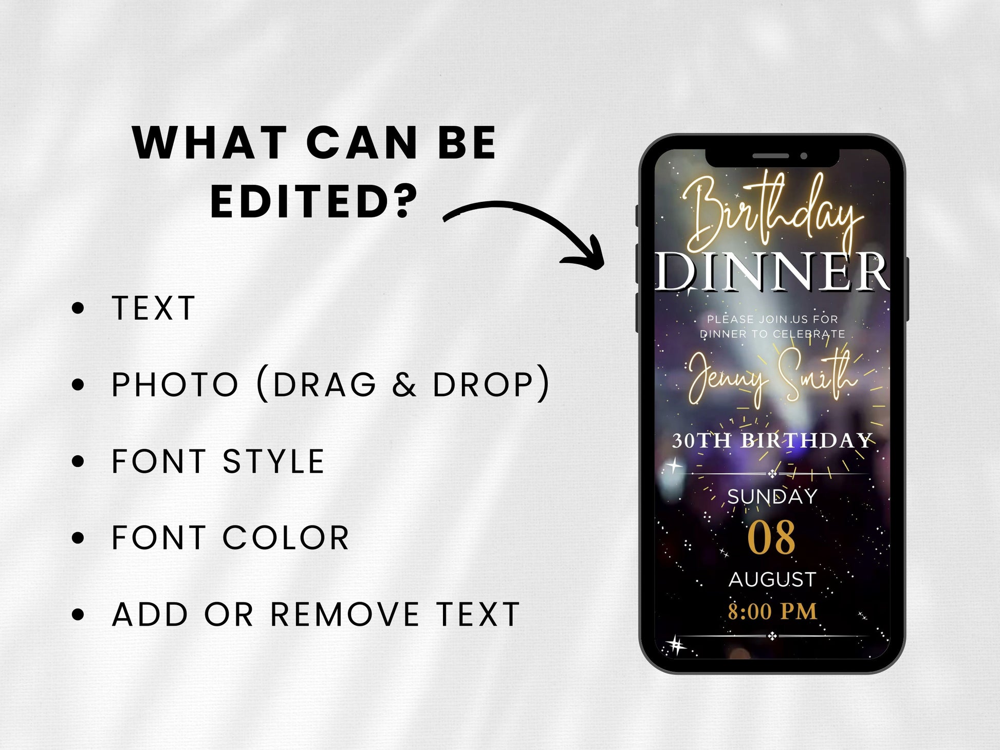 Animated Birthday Dinner Invitation Template, Editable Video Invite (Instant Download)
