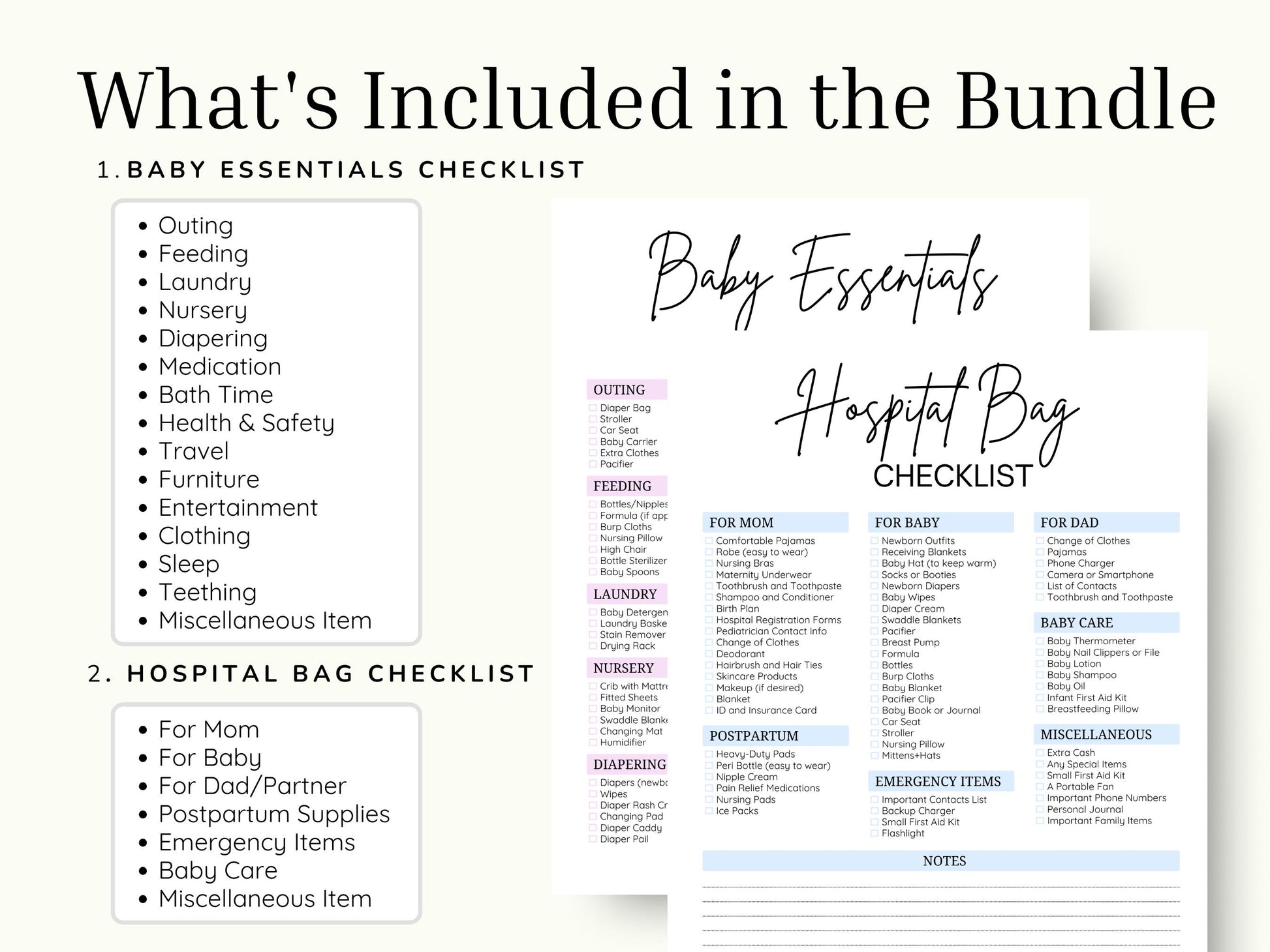 Baby Essentials Checklist Bundle: First Time Mom Planner (Digital Download)