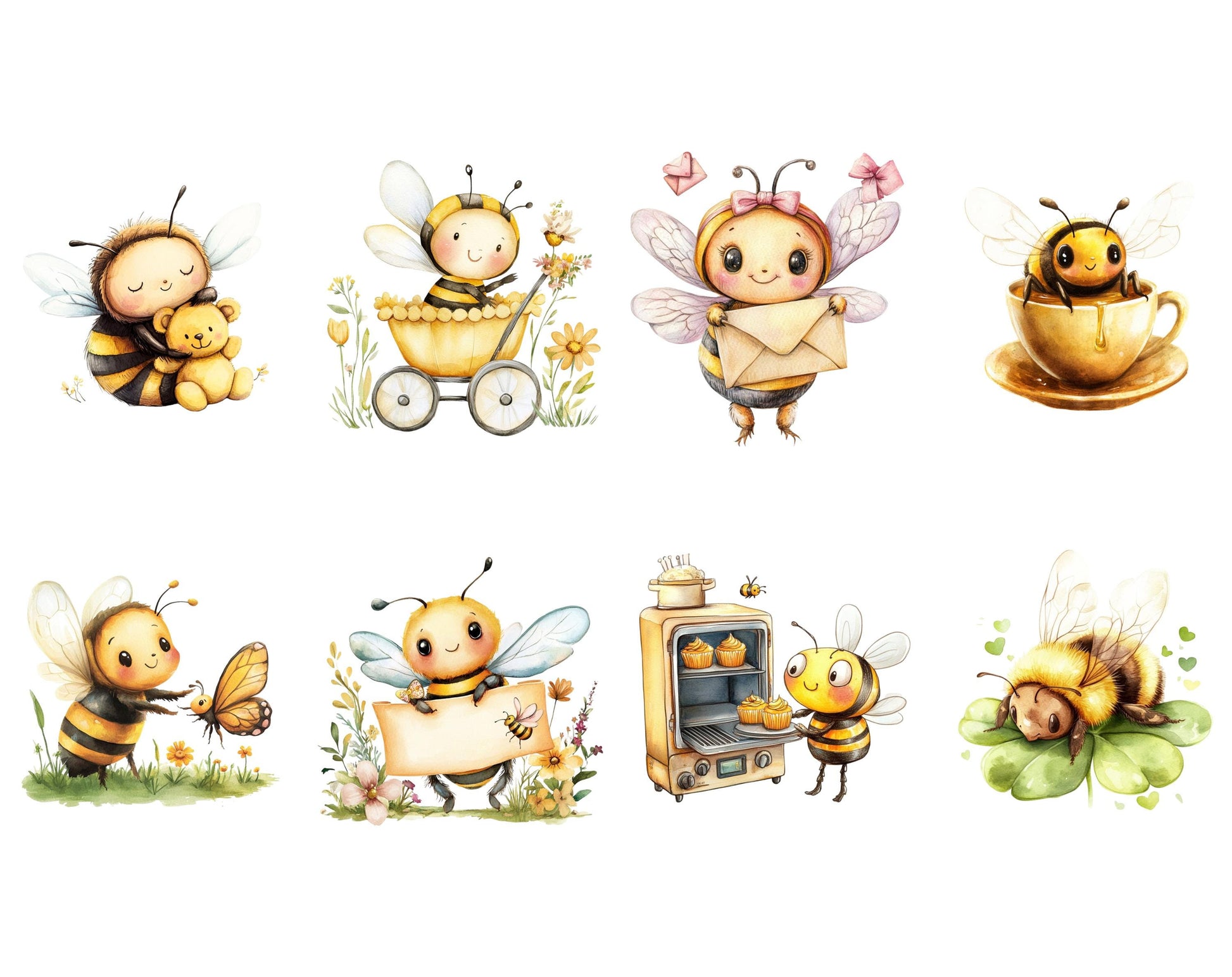 This set of 68 high-quality Bee clipart illustrations is ideal for infusing creativity and charm into any project. Showcasing high-resolution graphics with transparent backgrounds, these whimsical images are perfect for a variety of uses, from children's party invitations to nursery decorations, scrapbooking, and beyond. Whether you’re designing personalized gifts, digital planners, or social media graphics, these charming and adaptable clipart illustrations are guaranteed to elevate your work and bring a delightful flair to every project.
