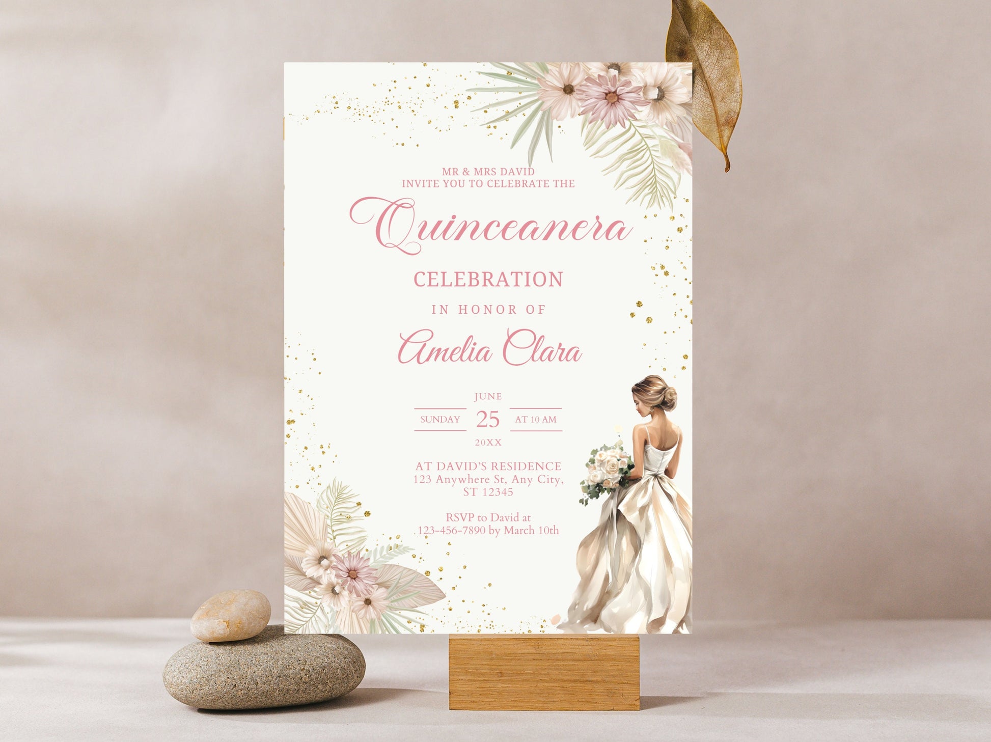 Transform your upcoming birthday into an unforgettable event with our editable Quinceanera Birthday Invitation Template! Crafted on Canva, this template allows you to customize every detail with ease.
