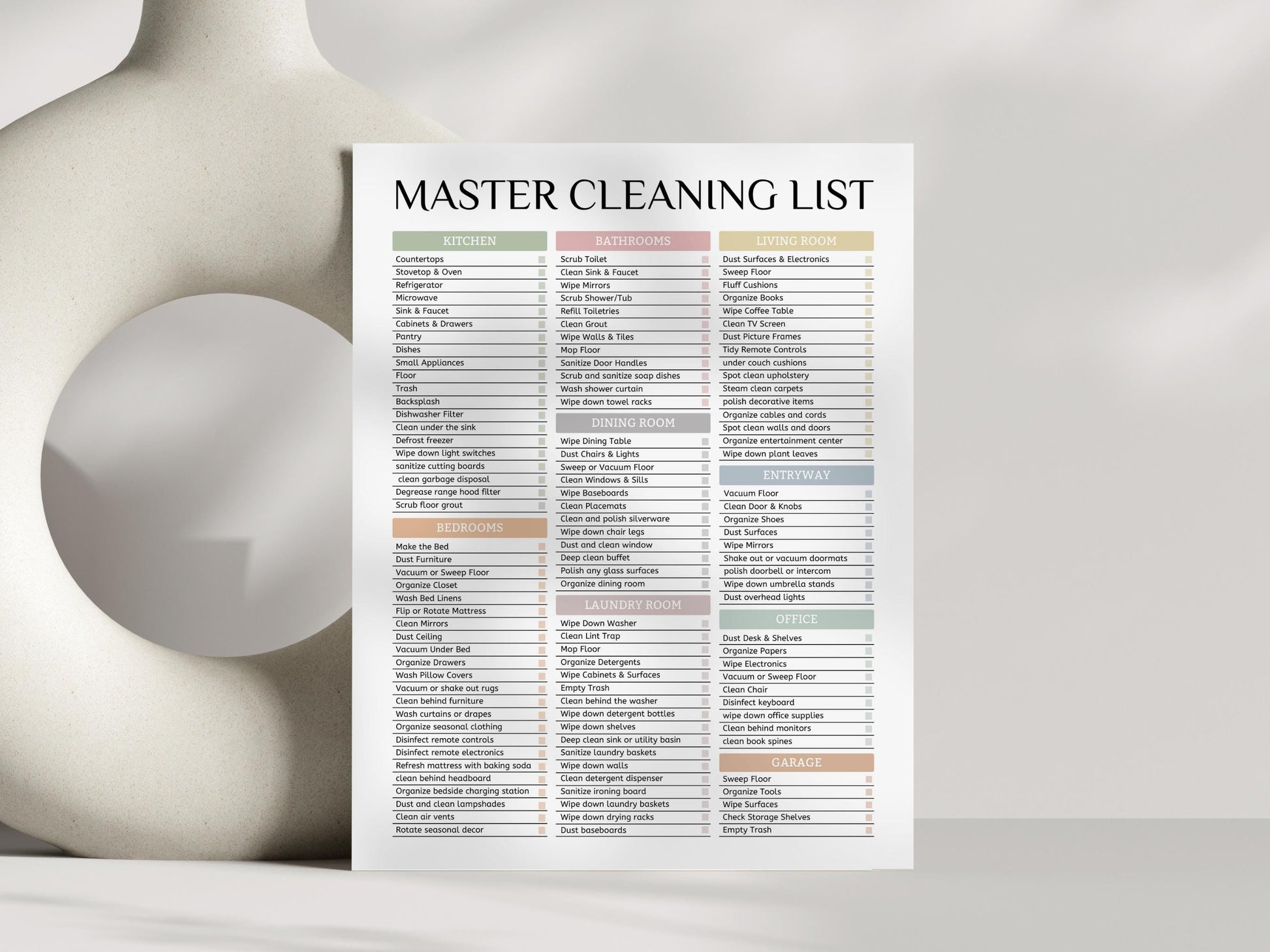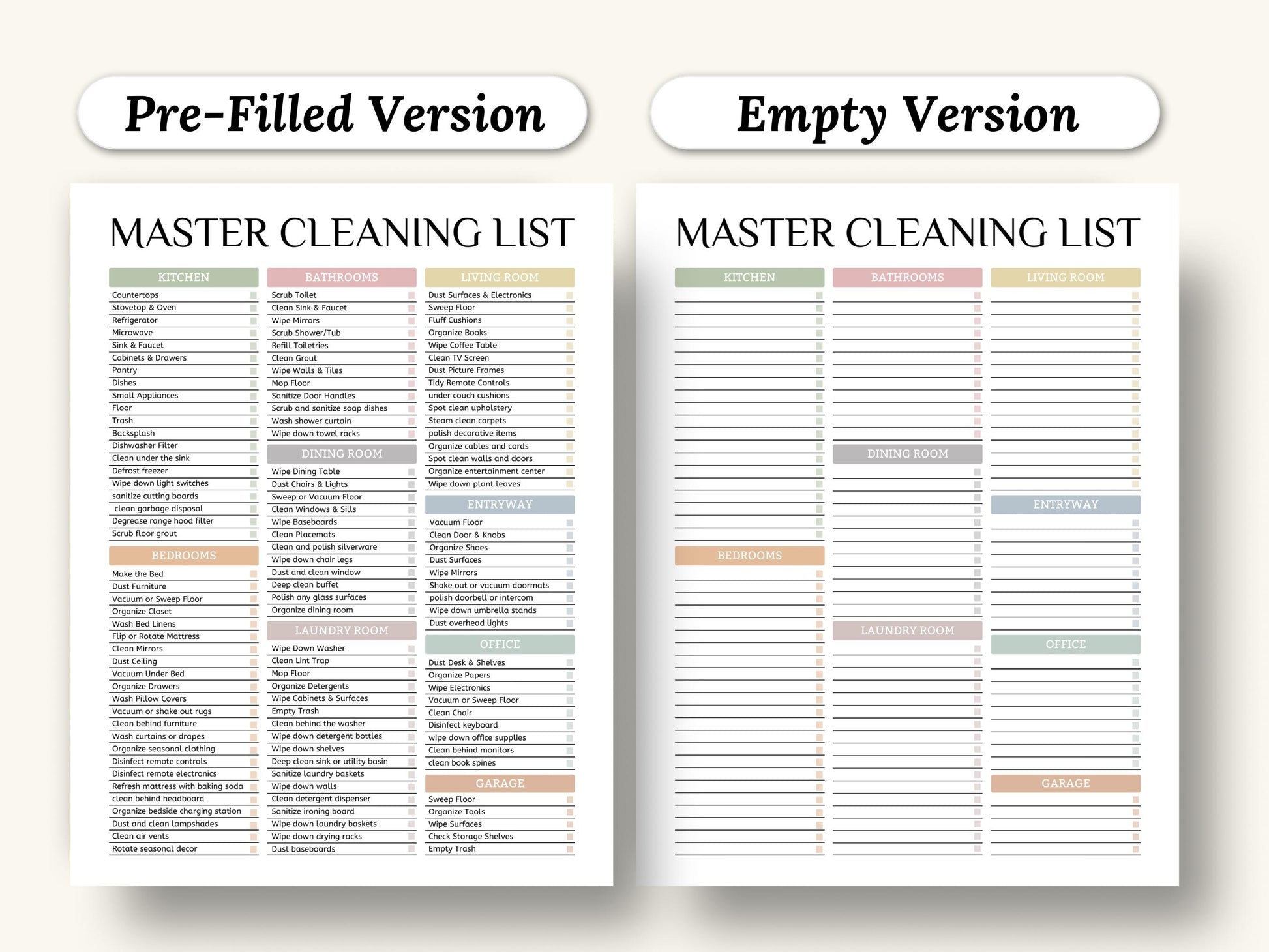 Master Cleaning Checklist | Printable | US Letter Size, A4, A5| Instant Download