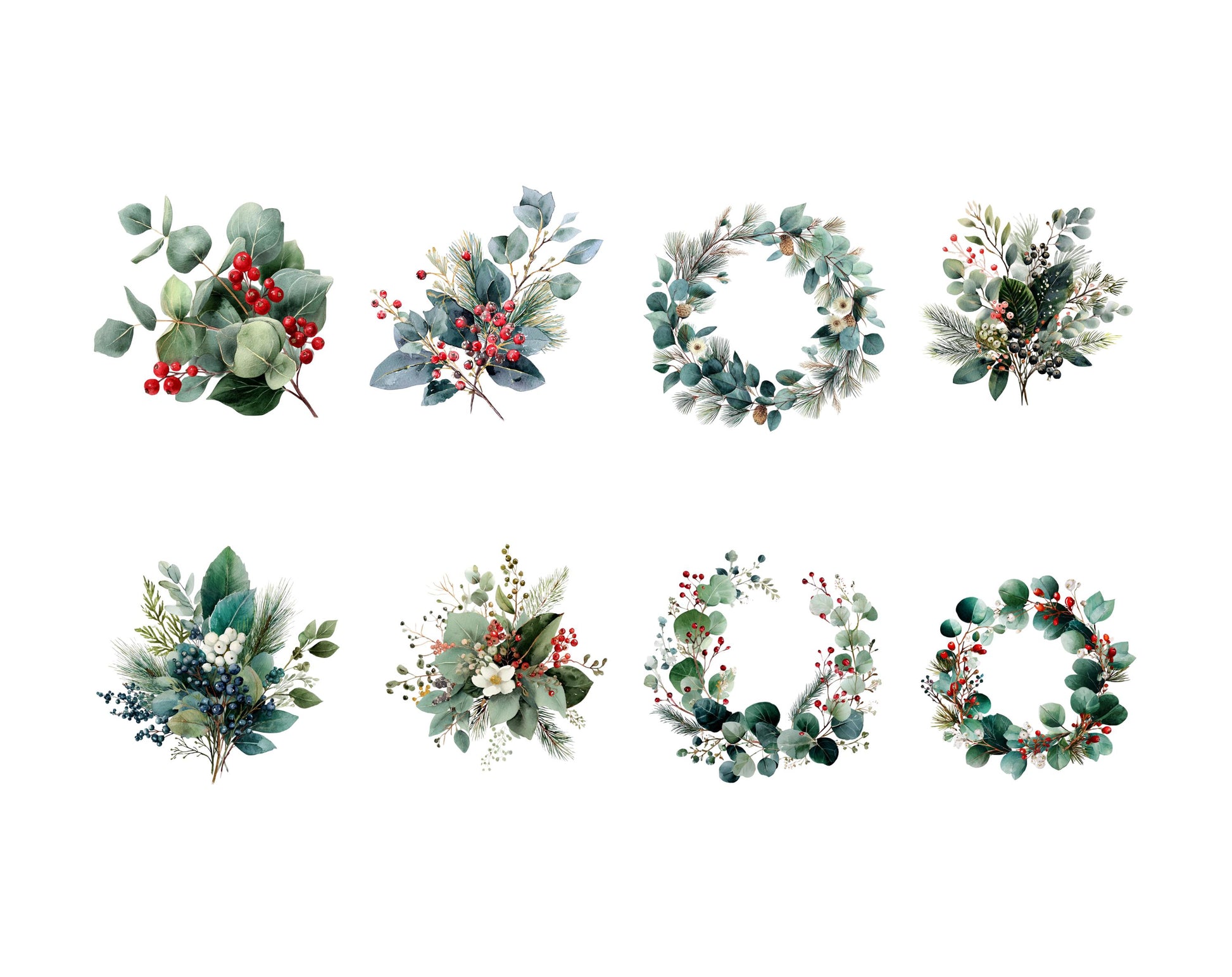 Botanical Clipart Bundle, Watercolor Greenery Wreaths Floral Borders, Flower Frames PNG, Christmas Frame, Commercial Use, Instant Download