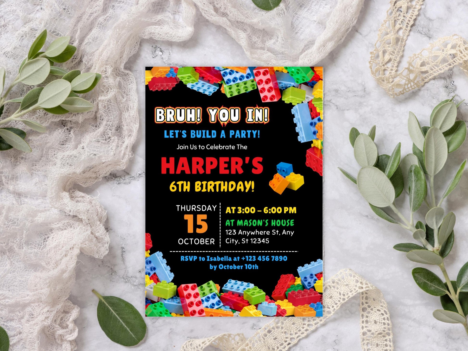 Building blocks Birthday Invitation, Colorful Kids Birthday Party Invite, Editable Invitation, Canva Template, Digital Download