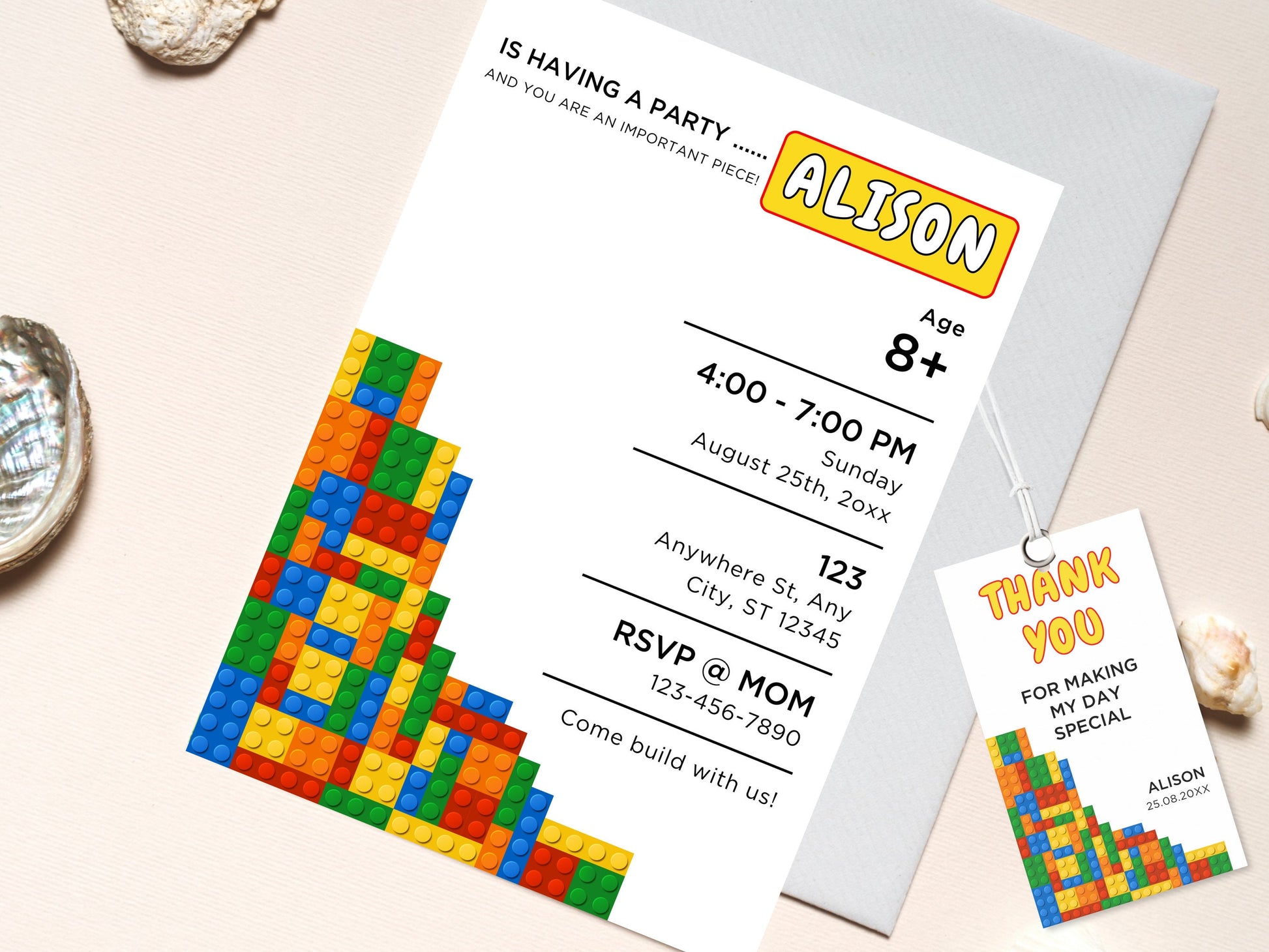 Building Blocks Birthday Invitation, Editable Brick Party Invite (Digital Download)